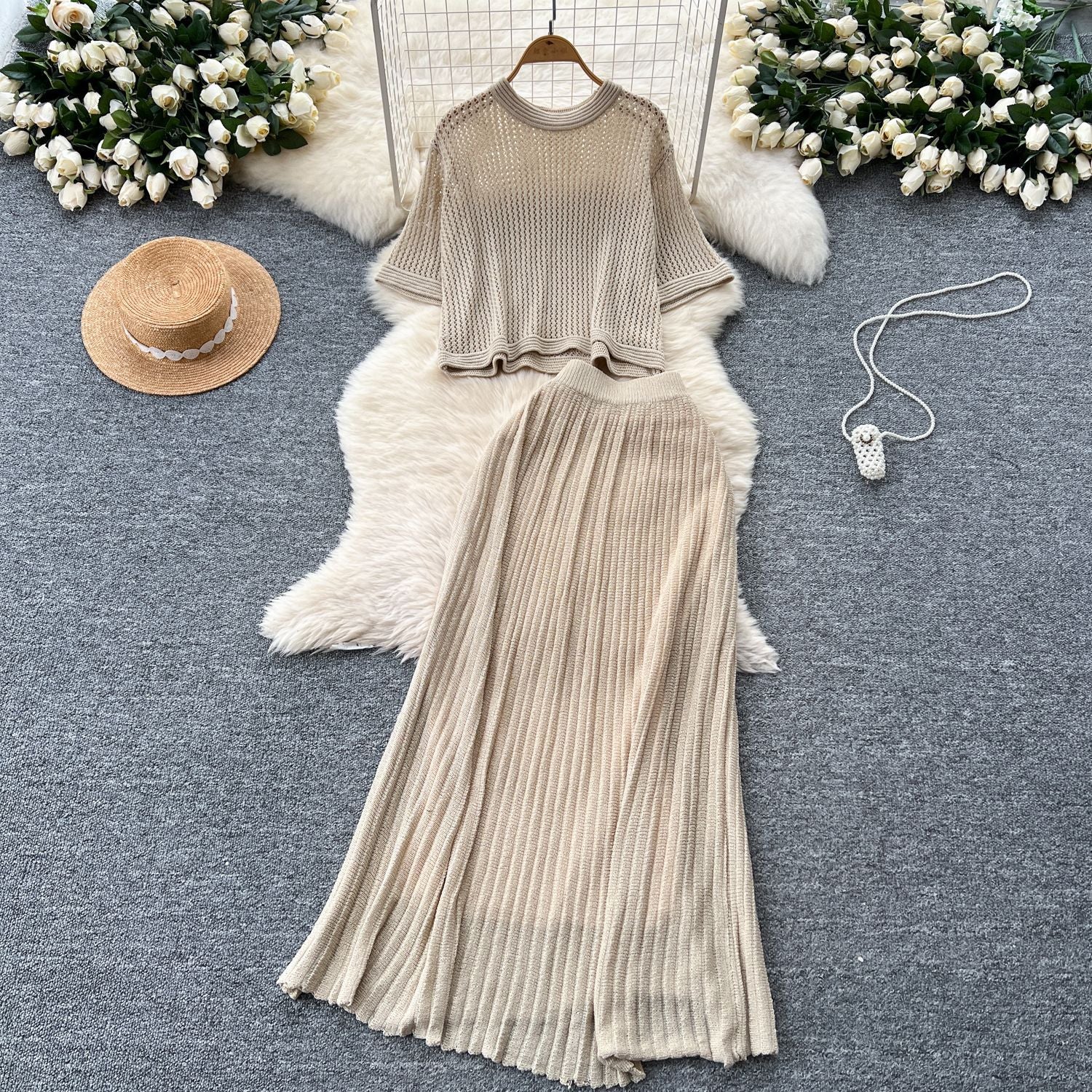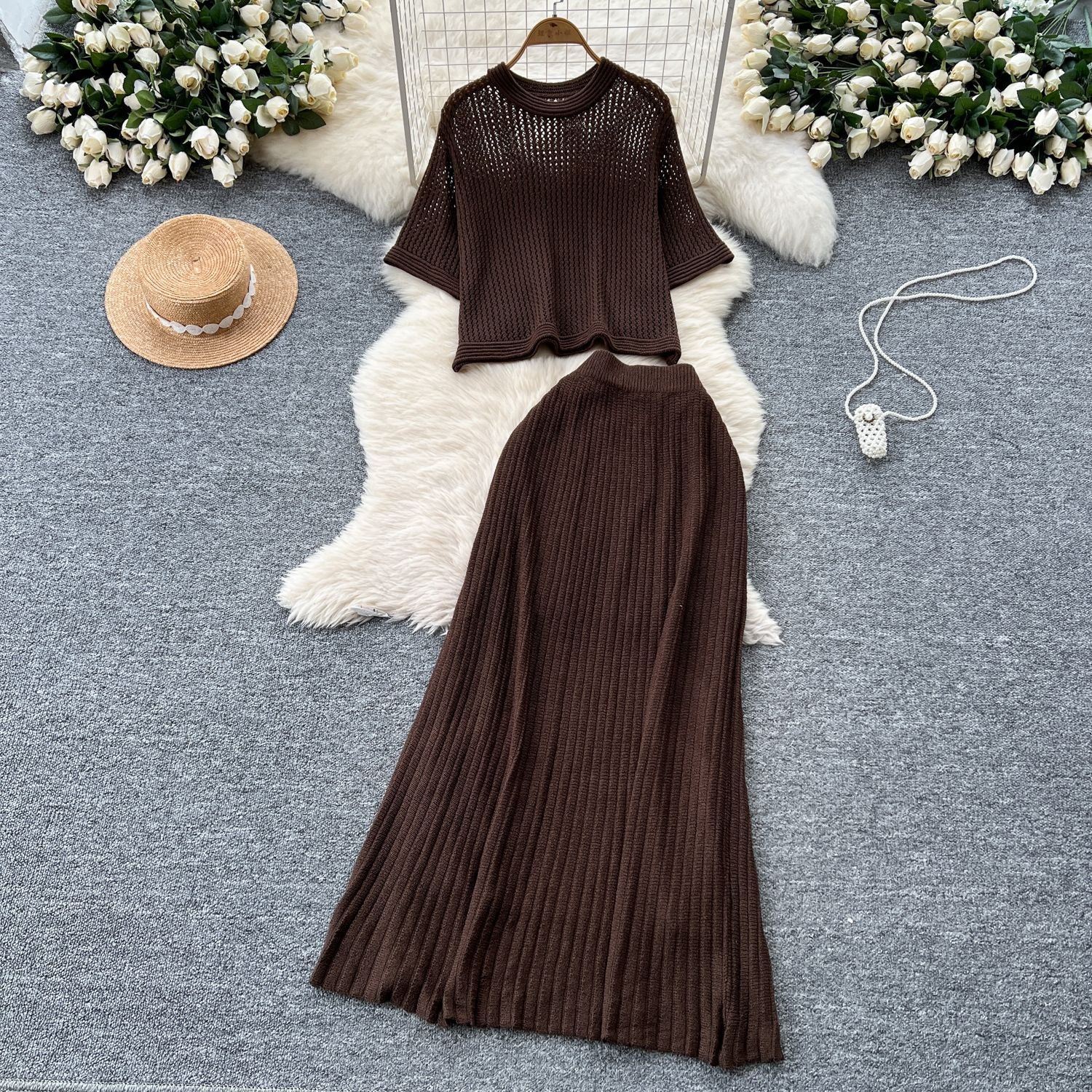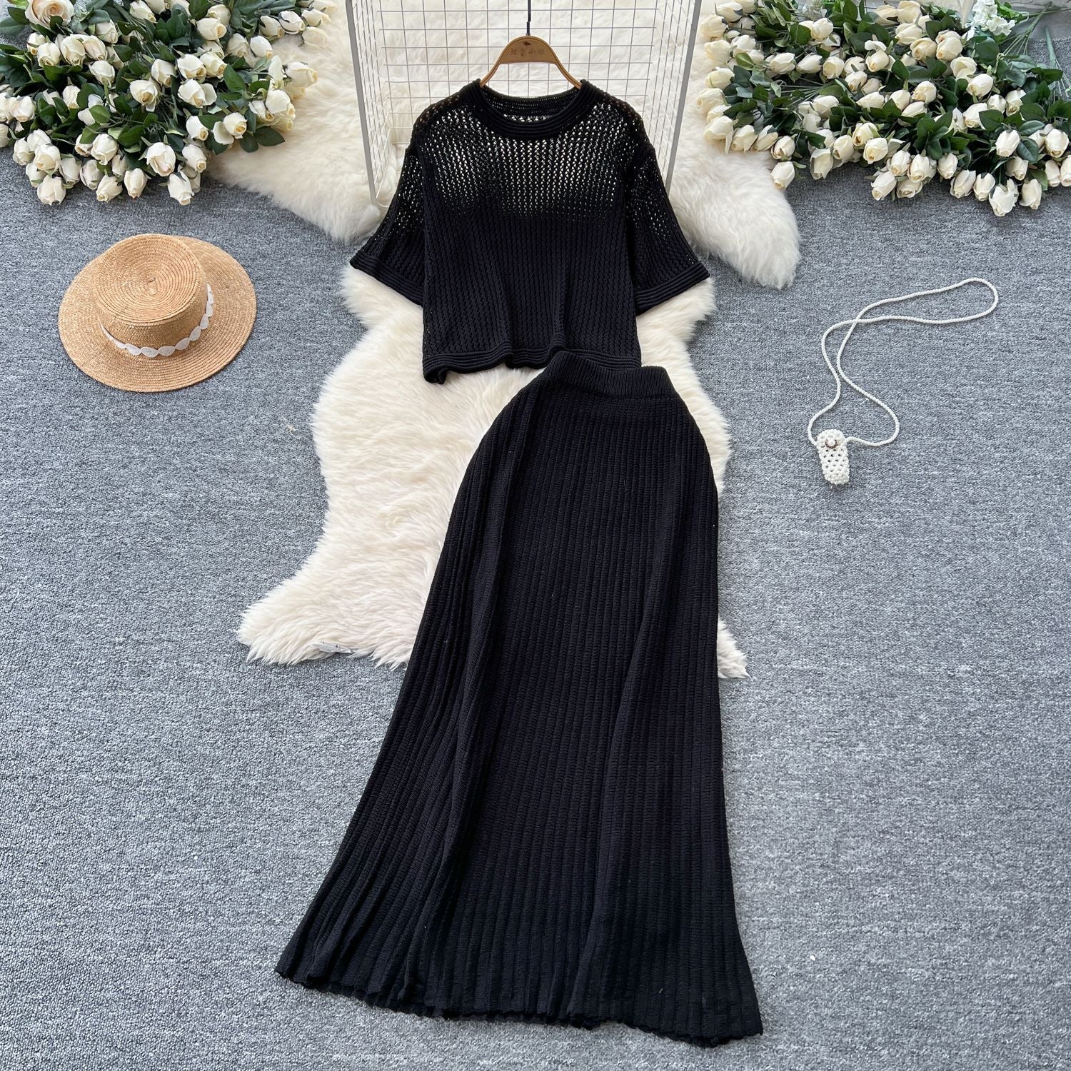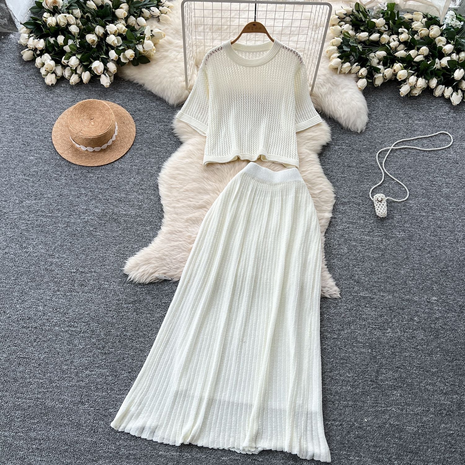 Summer Dress A Complete Set Of Women's Han Yen-Down Short-Sleeved Knitting Blouse High Waist Slim Half Body Skirt Two Sets
