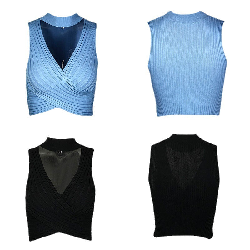 Women's Summer Ins Hanging Neck Hot Babes Knitted Blouse Outside Wearing Ladies Small Sling Vest