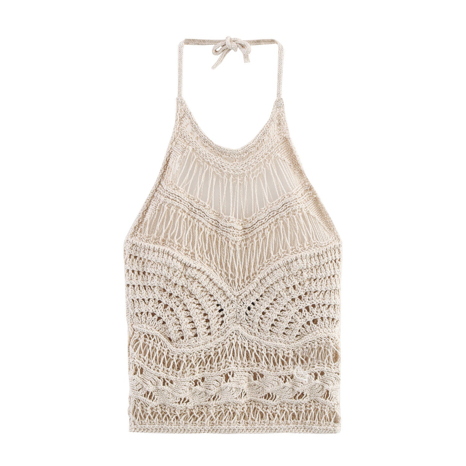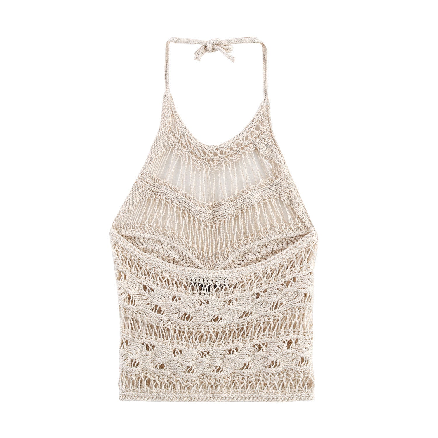 Z Wind Summer New 2025 Women's Clothing Hollow Knitted Neck Bare Back Leisure Vest Blouse 3991015