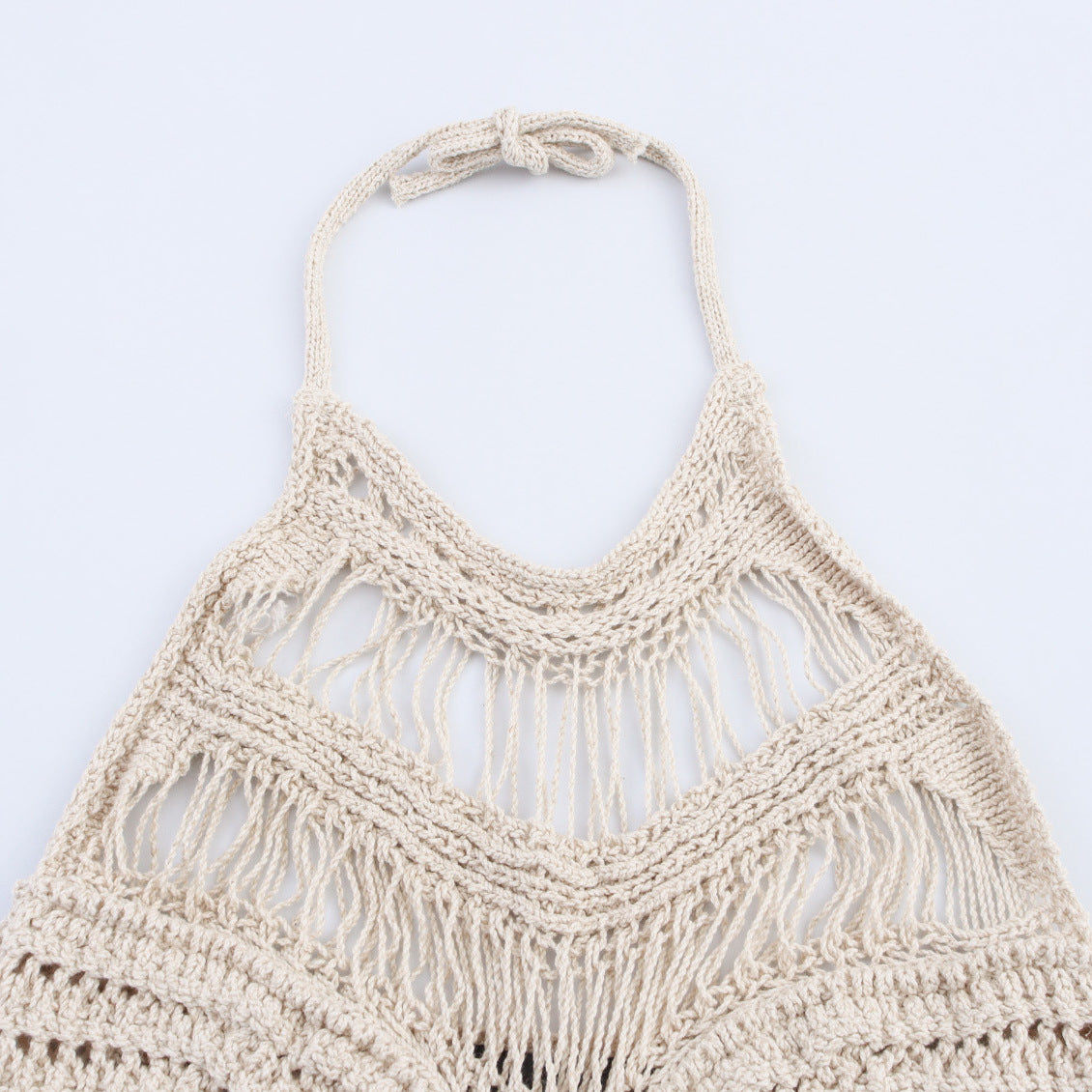 Small-Scale Vintage Hollow Crocheted Shoulder Sling Knitted Shirt Two Sets Of Women's Half-Dress