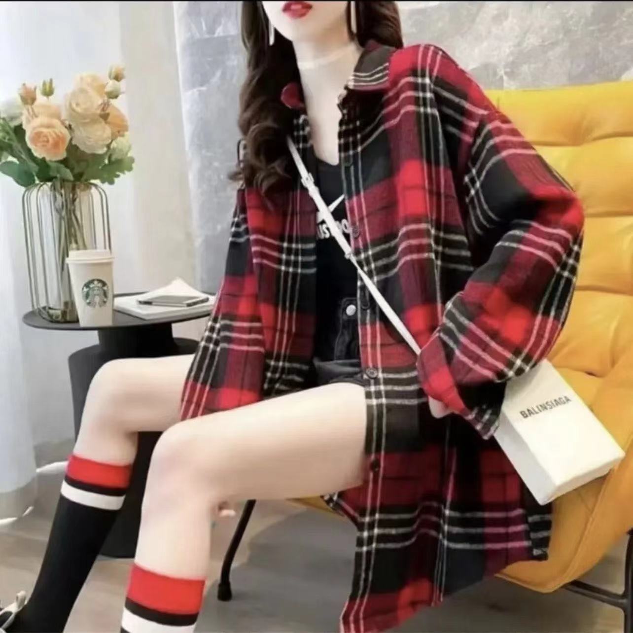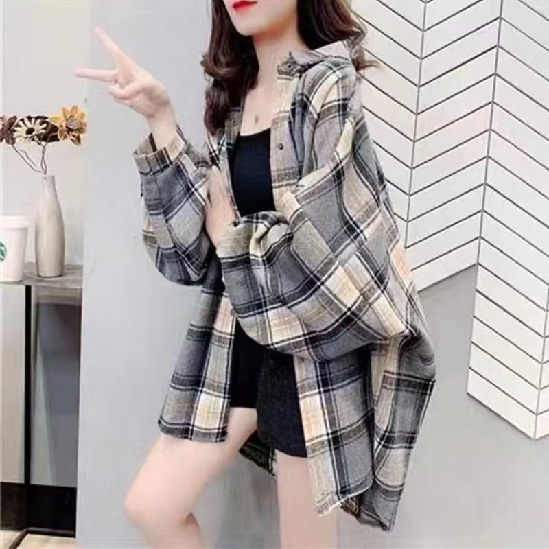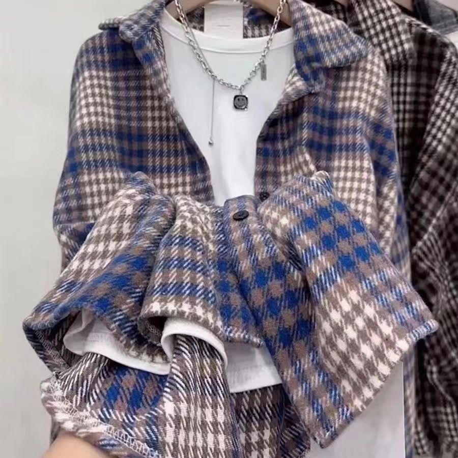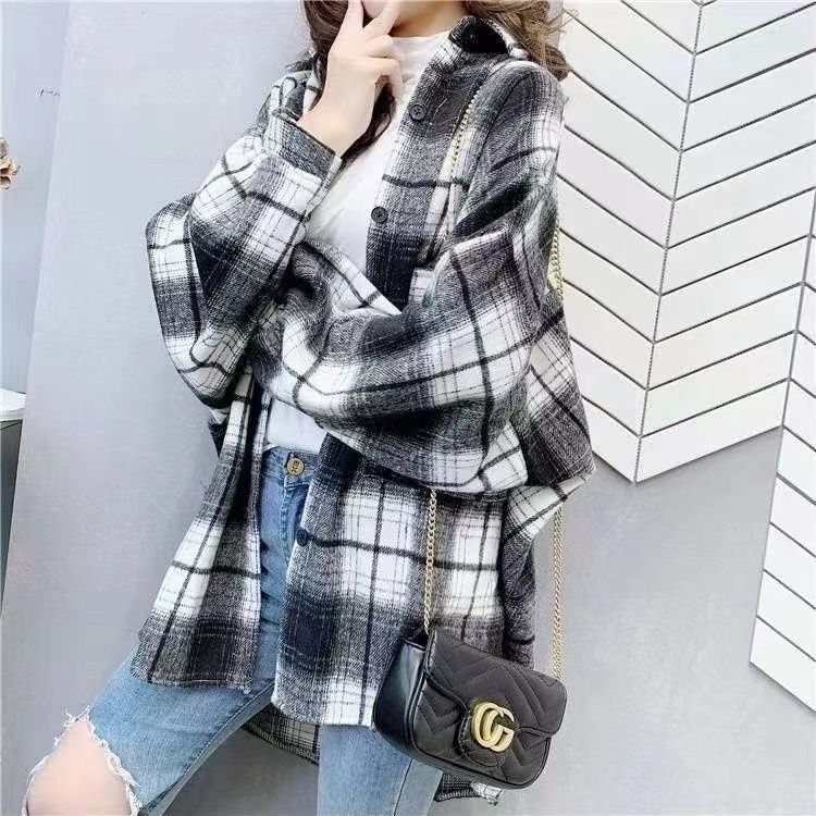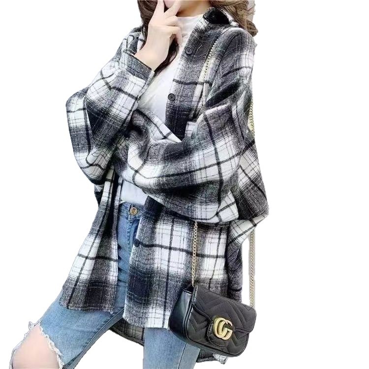 Grinding Thick Hair This Plaid Shirt Women Loose Long Autumn And Winter New Hong Kong Taste Shirt Coat Tide