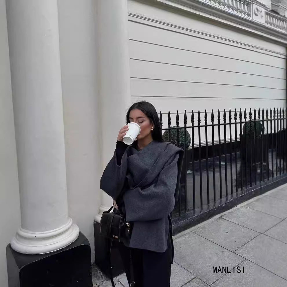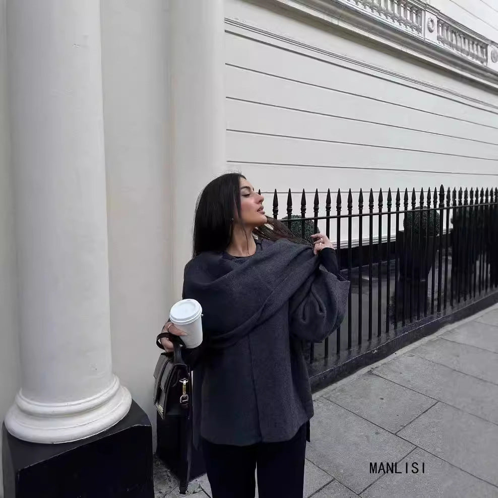 Ins New Women's Dress With Asymmetrical Scarf Short Knitted Coat