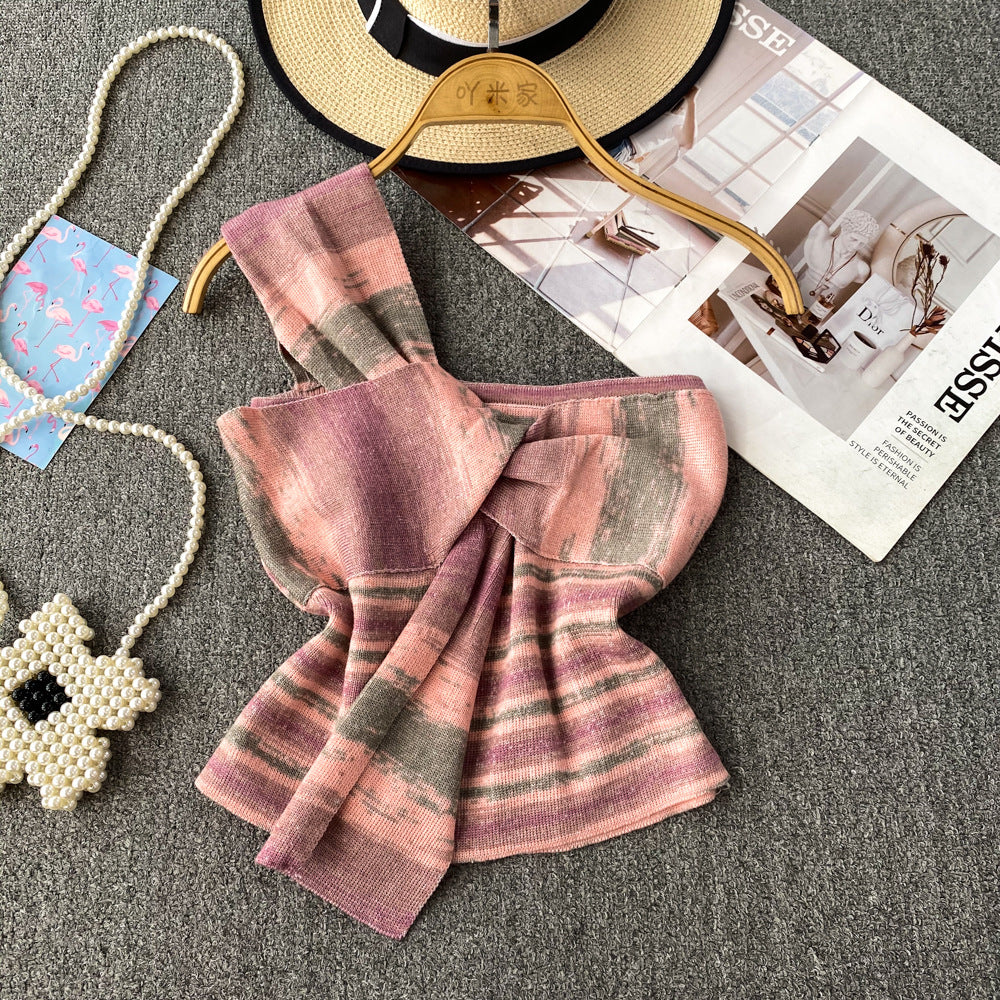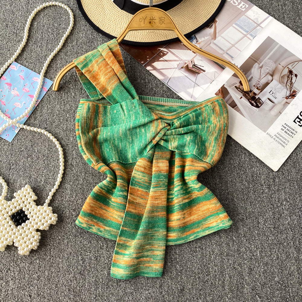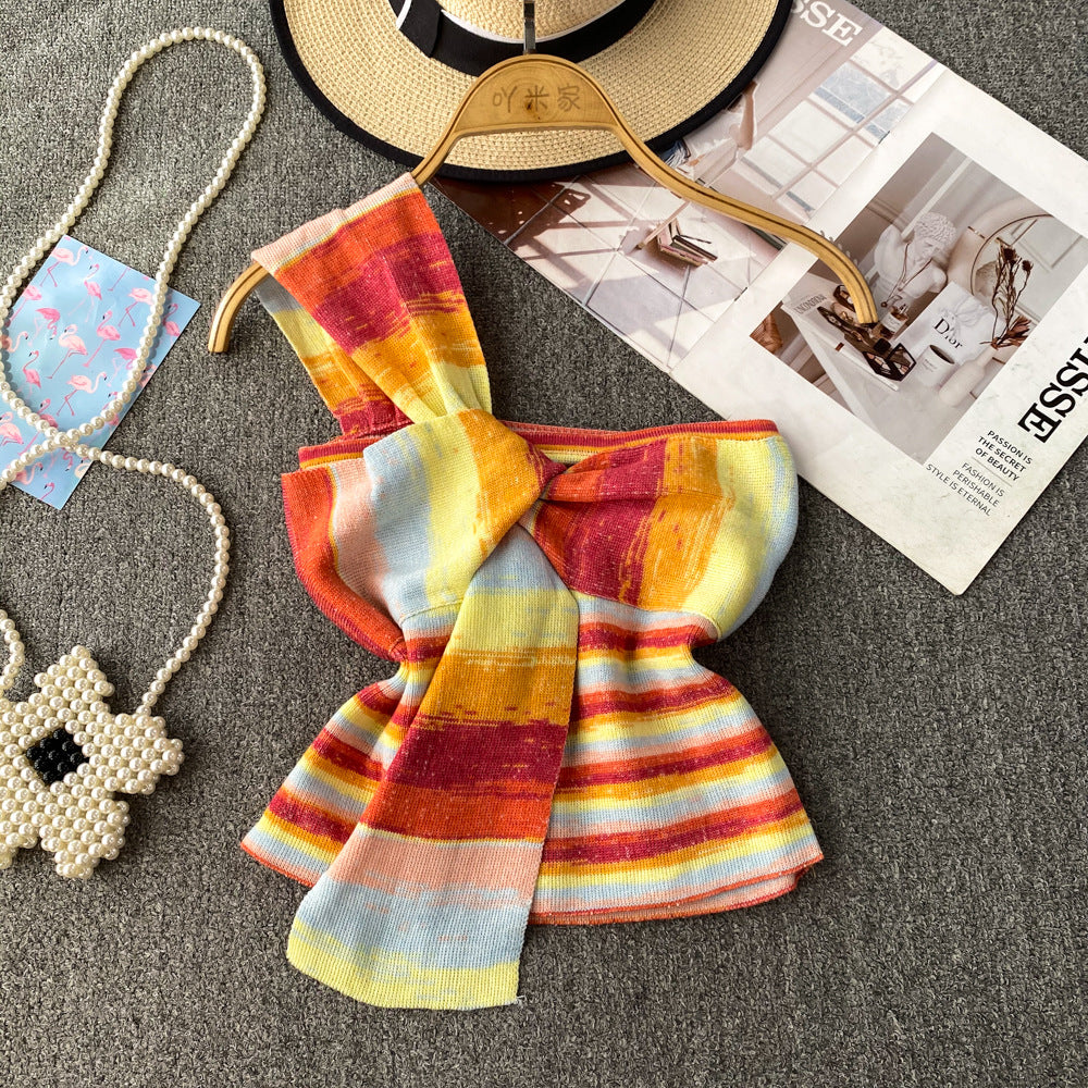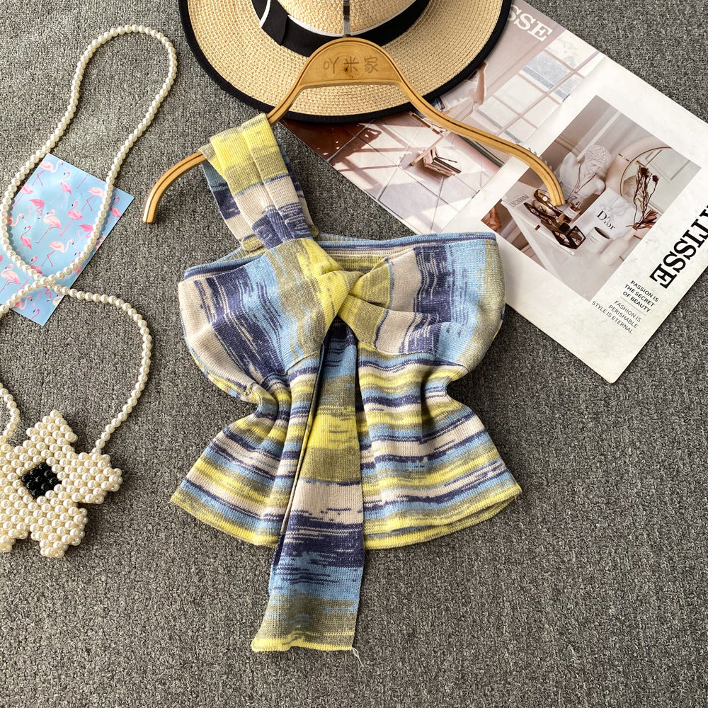 Summer Design With Chic Kinescastic Striped One-Shoulder Sling Vest For Women Wearing A Short Coat Of Body