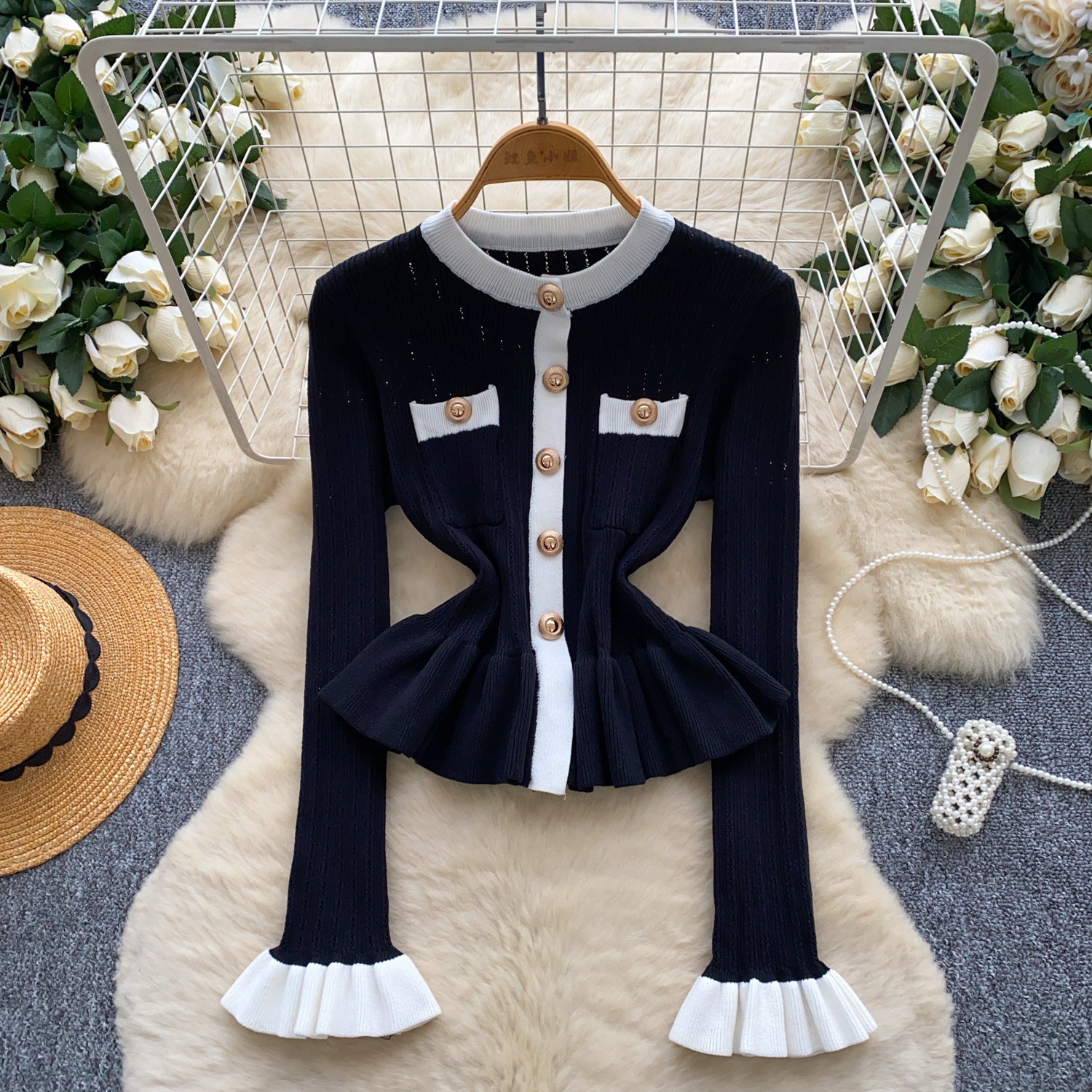 French Name Xiao Xiangfeng Thrombium Metal Buckle Waist Long-Sleeved Knitted Top Girl Autumn Slim Thin Bottom Shirt