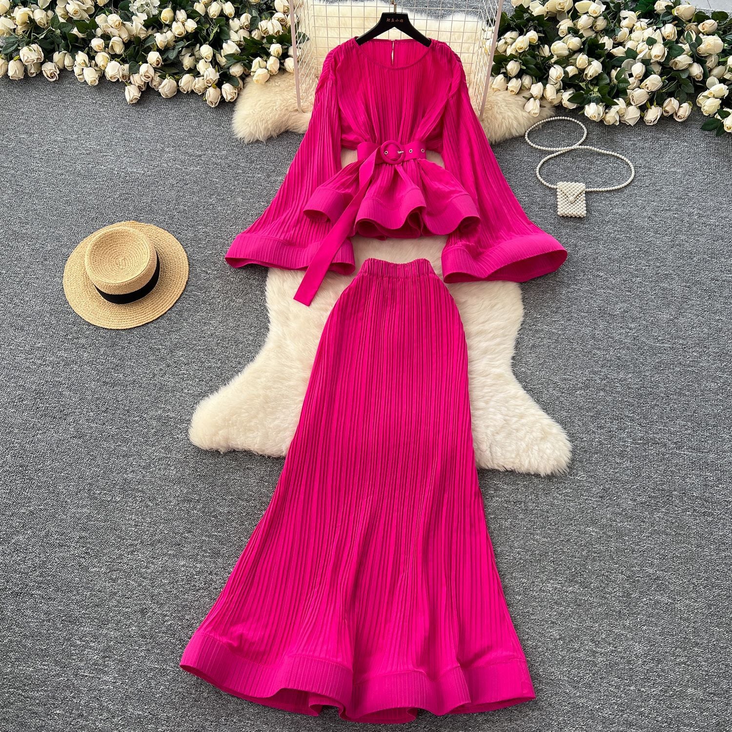 Oceanish Fashion Strap To The Waist Horn Sleeve Lotus Loaf Under The Pendulum Folding Folding Top + High-Waisted Fish Tail Half-Body Dress