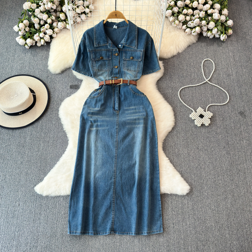Vintage Hong Kong Style Denim Dress Woman 2025 Summer New High-End Temperament To Show Thin Long Dress