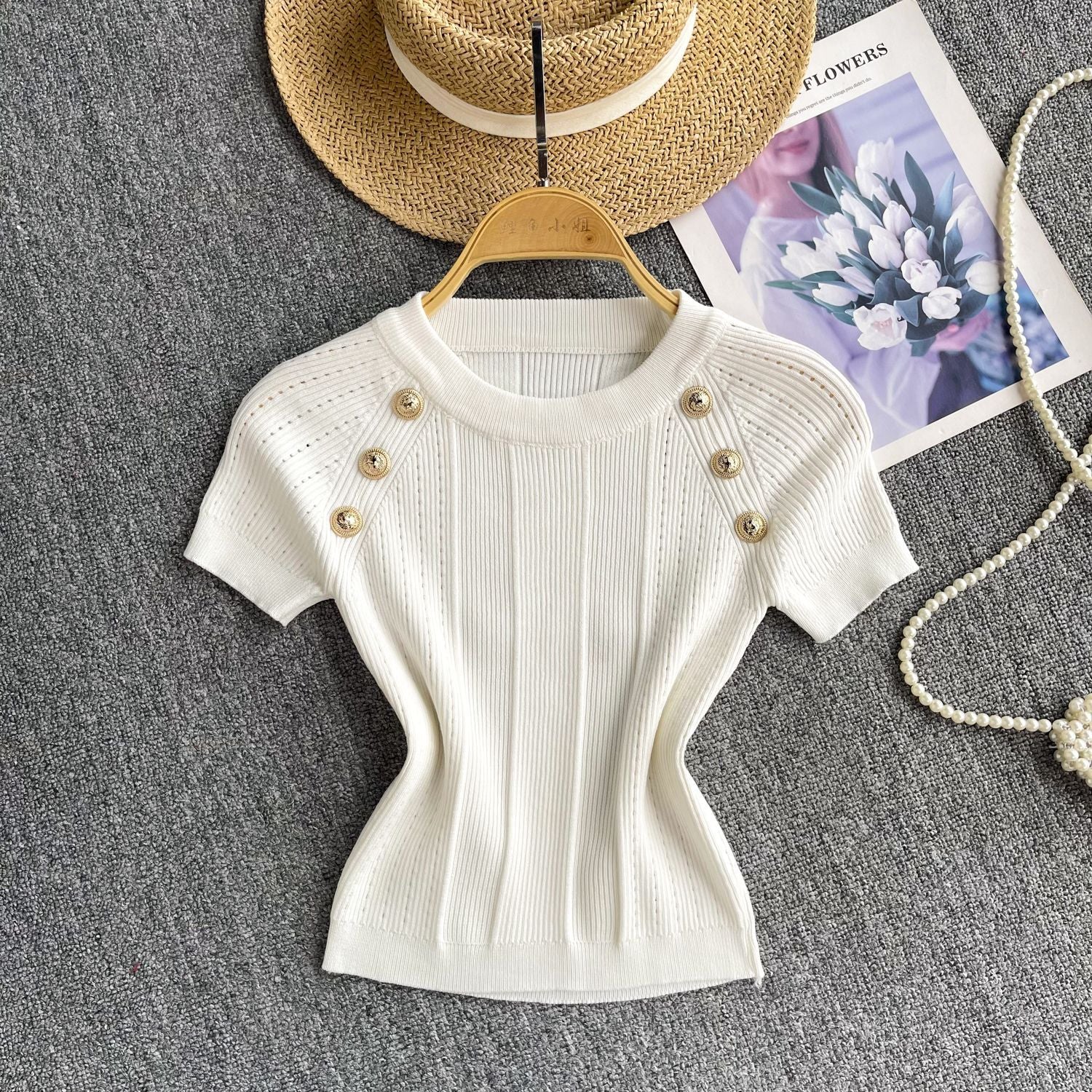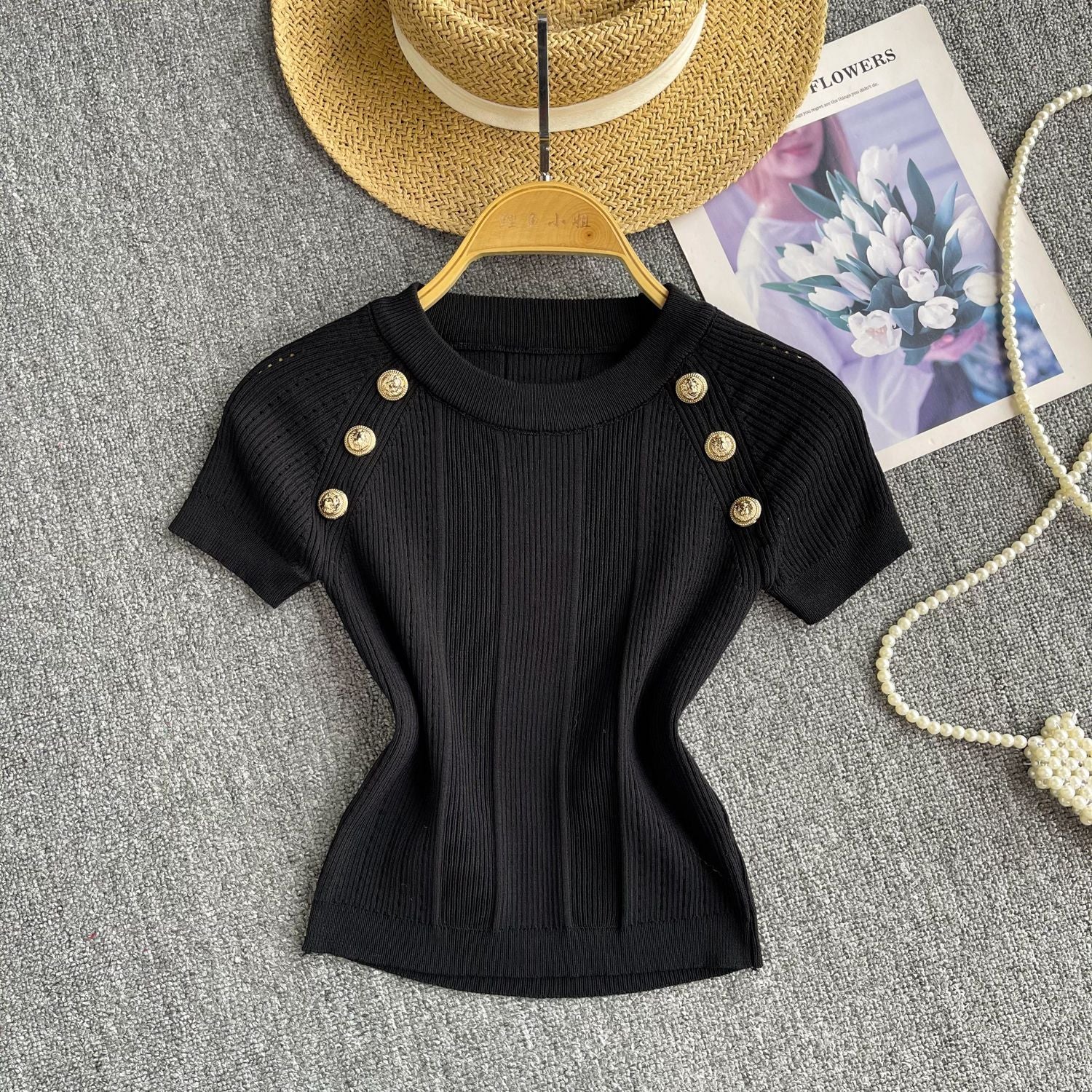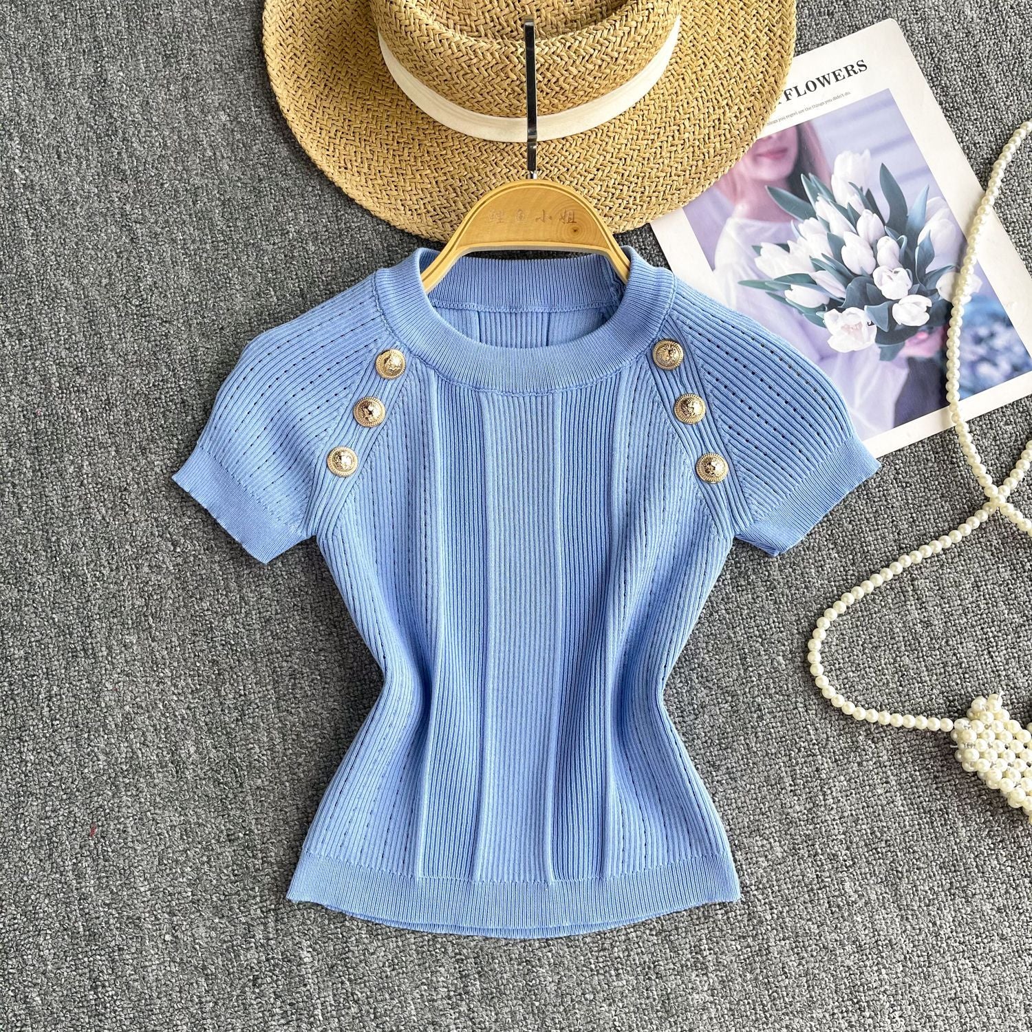 Spice Girls Knit Round Collar T-Shirt Girls Summer Thin Short Thin Design Feeling Fried Street Pure Desire Top