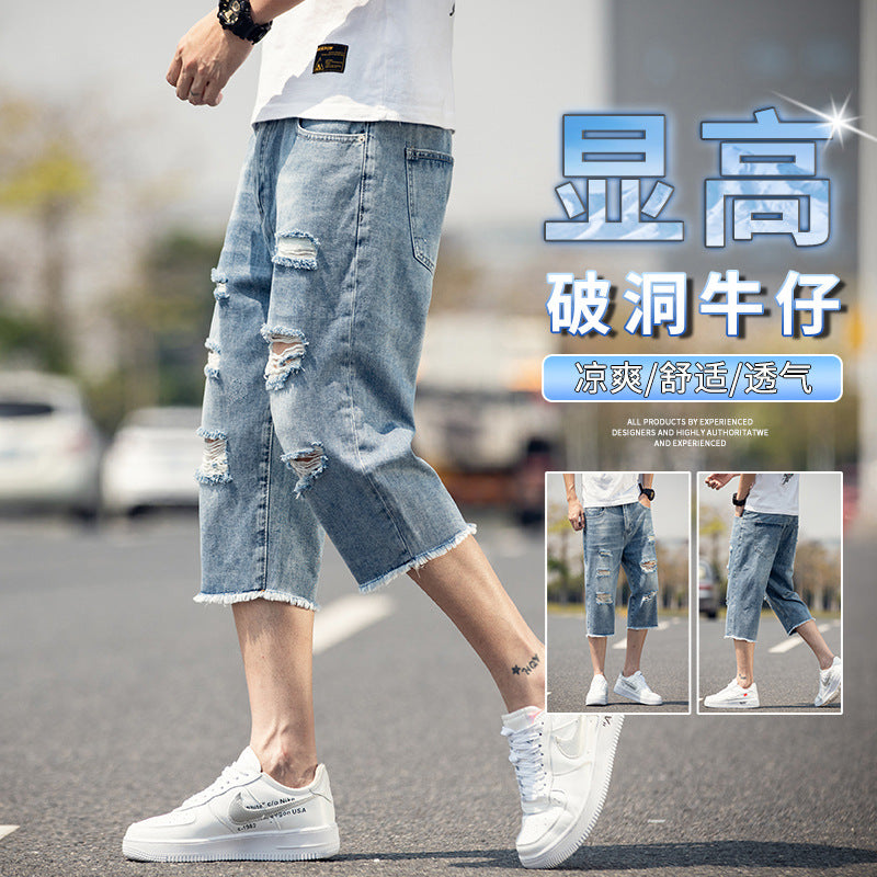 Denim Shorts Men's Summer Thin Loose Hole Trend 2025 New Casual Trend Pants