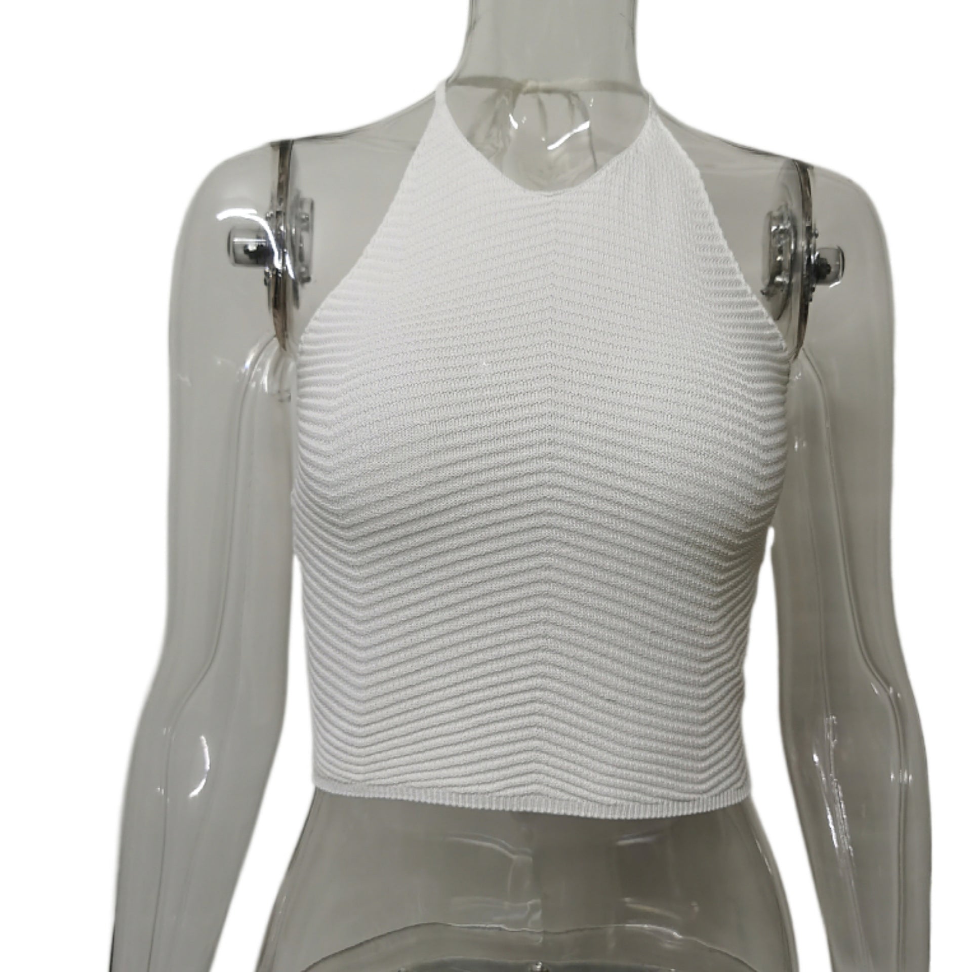 2025 Spring And Summer New Neck Strap Knitted Vest Women Solid Sleeveless Line Open Umbilly Back Sweater