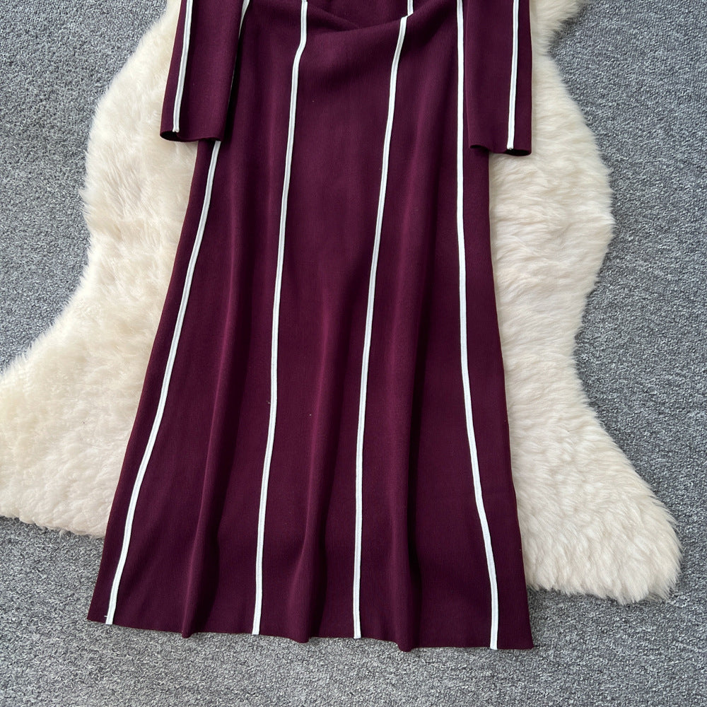 French High-End Sense Niche Fashion Side To Receive Waist Round Collar Long-Sleeved Sweater Dress Female Thin Dress