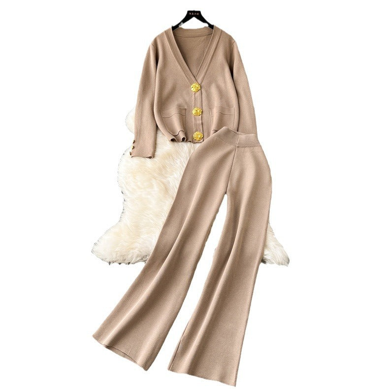 High-End Small Fragrant Wind Two Sets Of Women's Autumn And Winter Knitted Jersey Jacket Sweater Casual Trousers