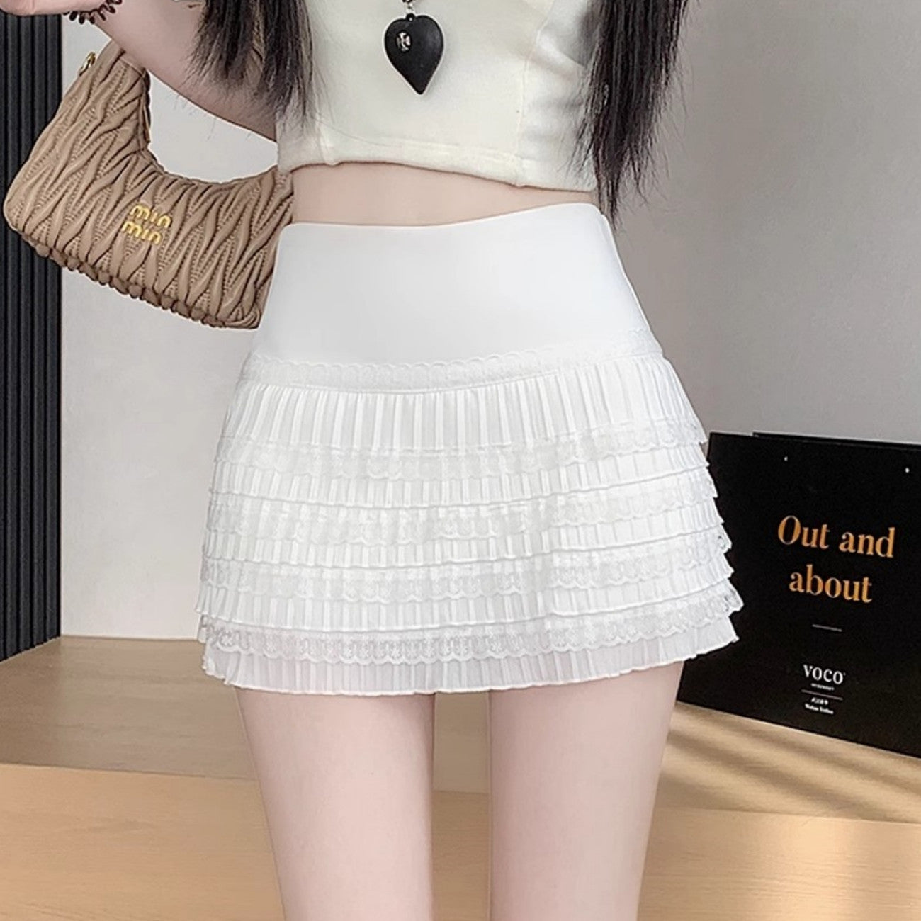 2025 Autumn And Winter Elastic High Waist 100 Folds Skirt Women Short A-Word Bag Hip Wear Thick Hairs Of The Skirt White