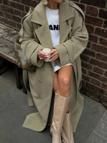 2025 Autumn And Winter Explosion Temperament Clapping Belt Long Hair Coat Single Buckle