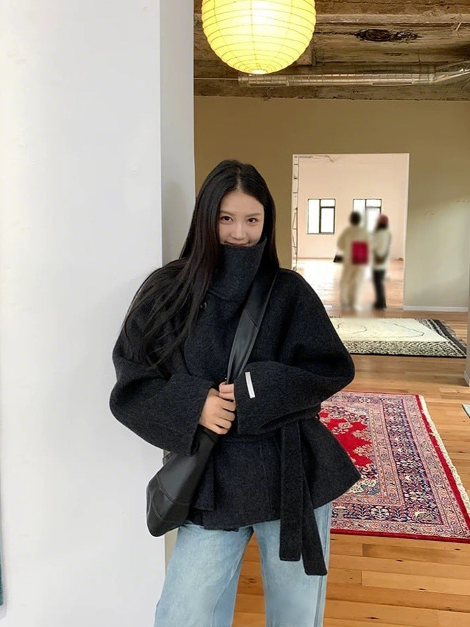 2025 Autumn And Winter New Women's Commuting Collar Button Belt Belt Coat Woman