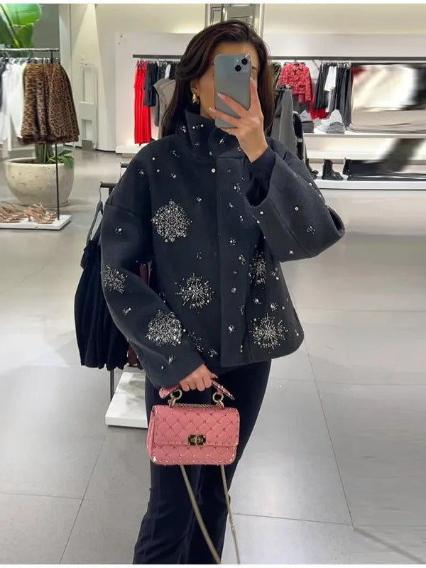 2025 Autumn And Winter New Women's Fashion Commuting Single Buckle Heavy Industry Lead Beads Hair Coat Women