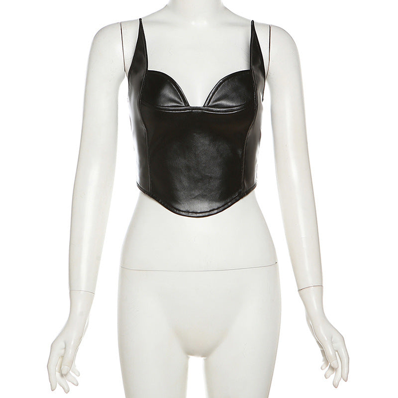 2025 Autumn Fashion Trend Women's New V-Collar Repair Body Out-Back PU Skin Set Small Vest