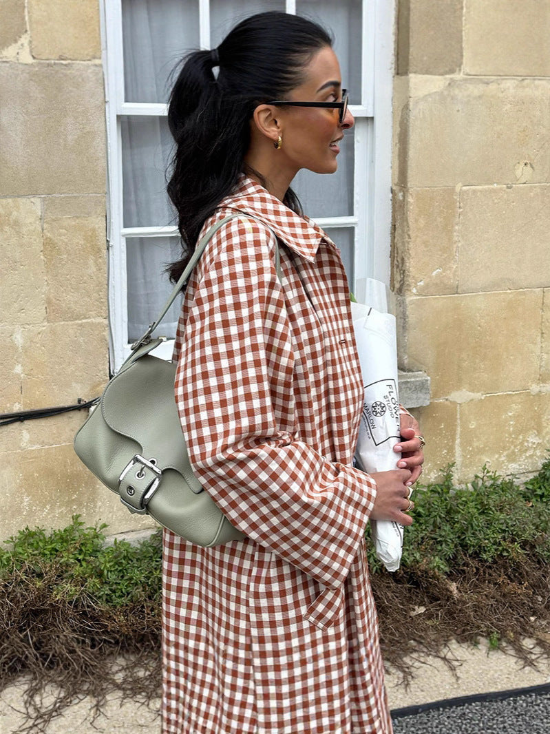 2025 Autumn New Retro Art Single Buckle Collar Collar Long Wind Jacket