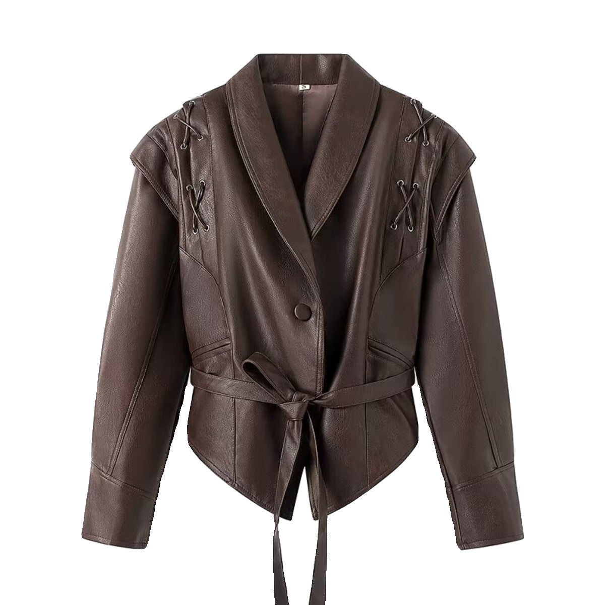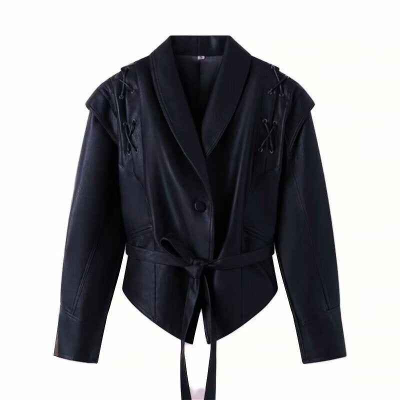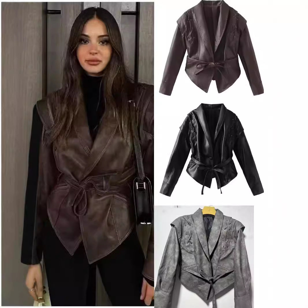 2025 Early Spring New Women's Retro Coffee Brown Leather Coat Women