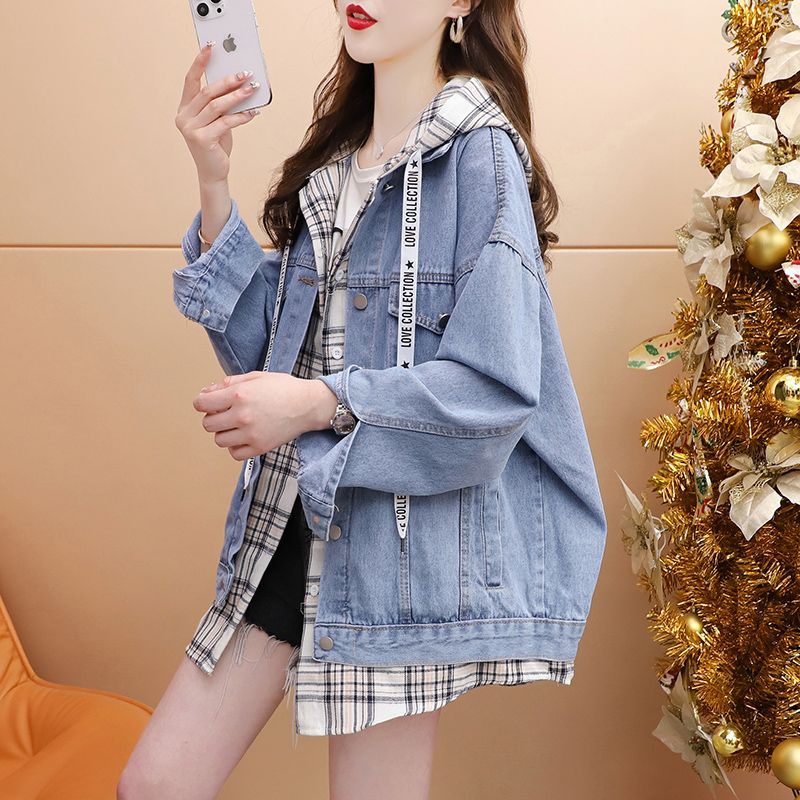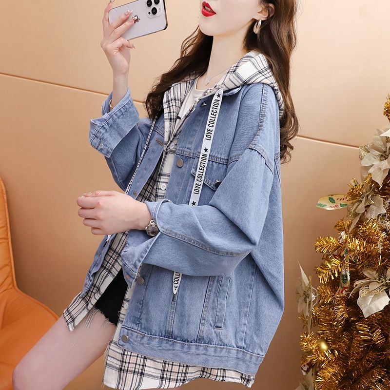 2025 New Autumn Languiled Hooded Blouse Loose Fake Two Hooded Cowboy Coats Spring And Autumn