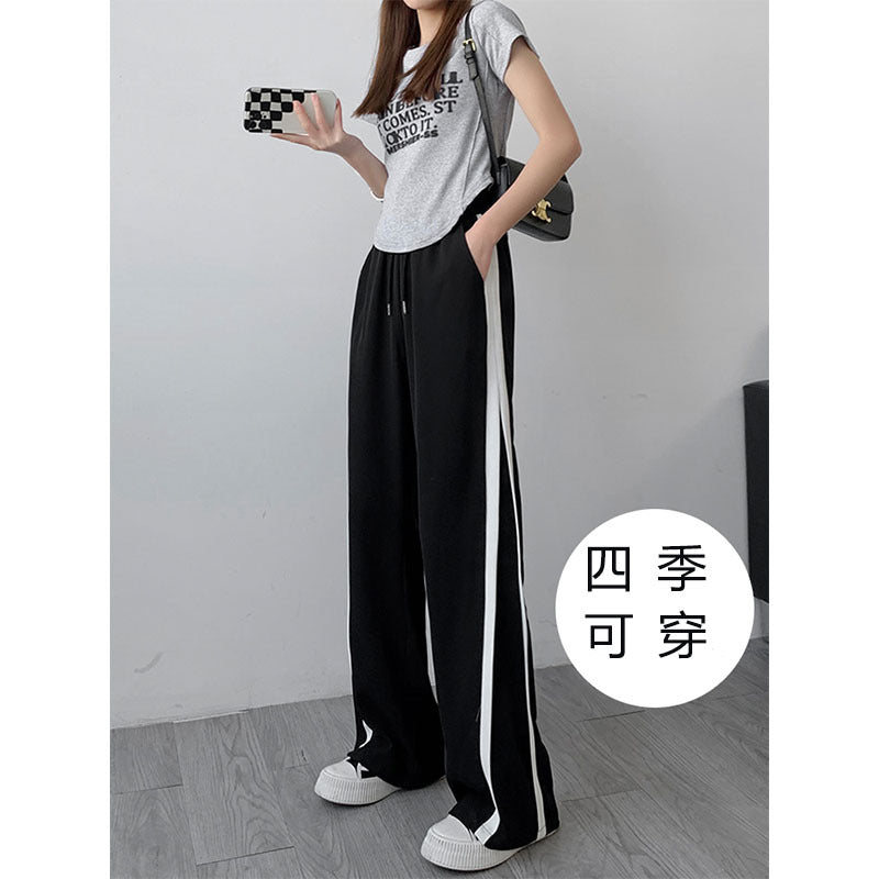 2025 New Broad Legants Women's Summer Thin High Waisting Sensing Skinny Casual Striped Sports Loose Straight Pants