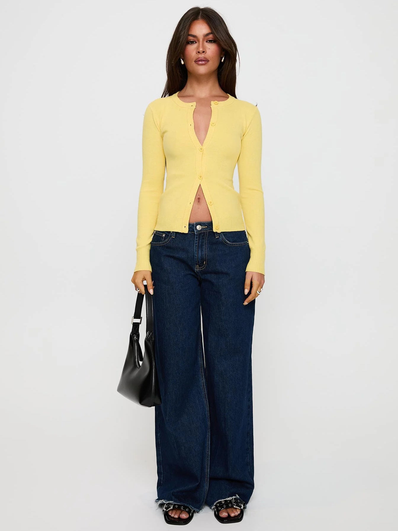 2025 New Women's Sexy Cardigan Street Long-Sleeved Top Solid Color Cardigan Knitwear