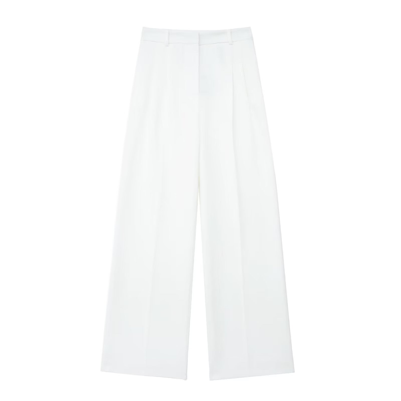 Autumn New Women's Folding Decoration High-Waist Wide Leg Pants Leak Back Hanging Neck Vest