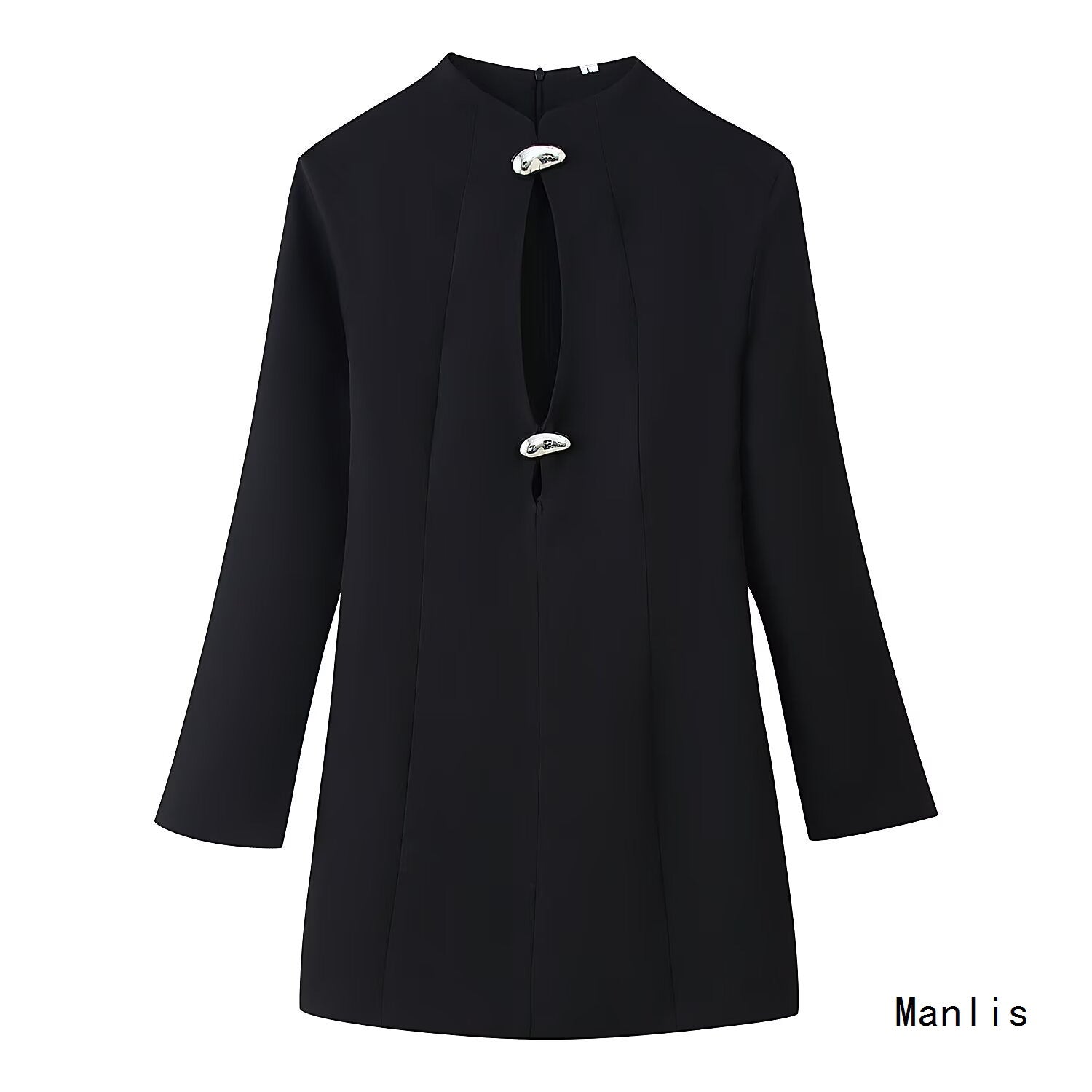 Women's Fashion Dress 2025 Autumn Design Feeling Cross-Folded Slim Top-Cuffed And High-Necked Dress