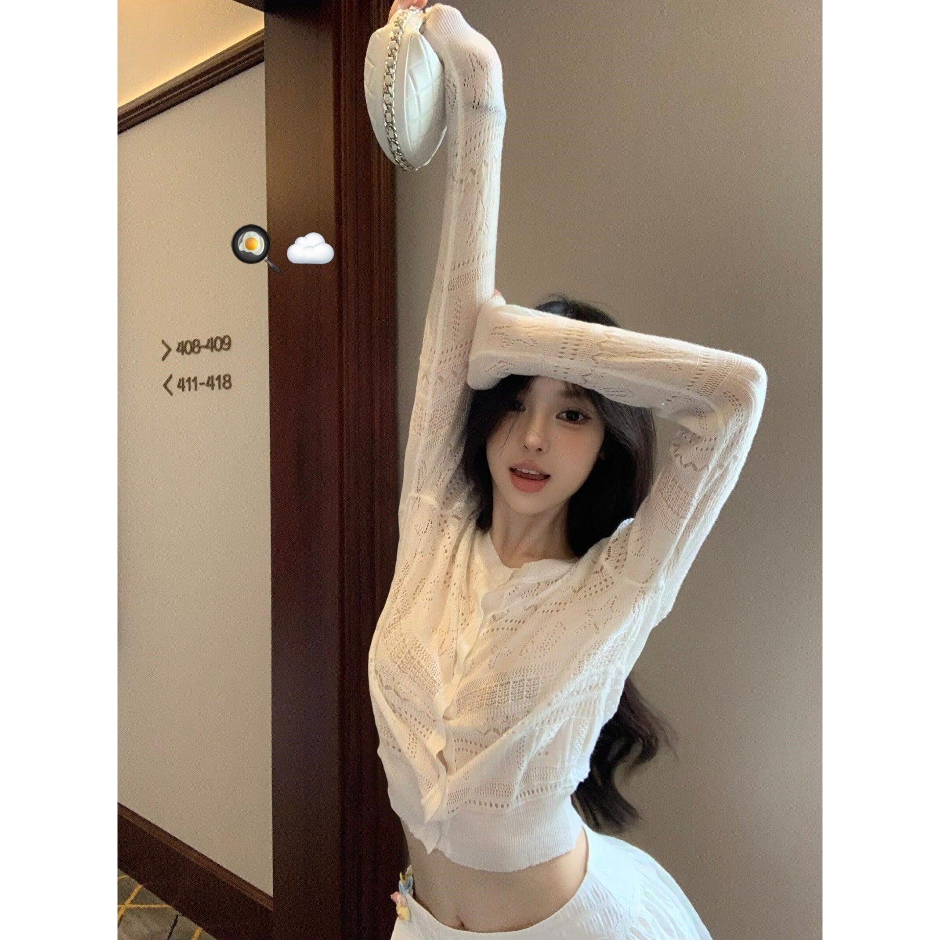 Cold And Light Sunscreen Knitted Cardigan First Love Fluen Lace Little White Dress Two Sets Of Women