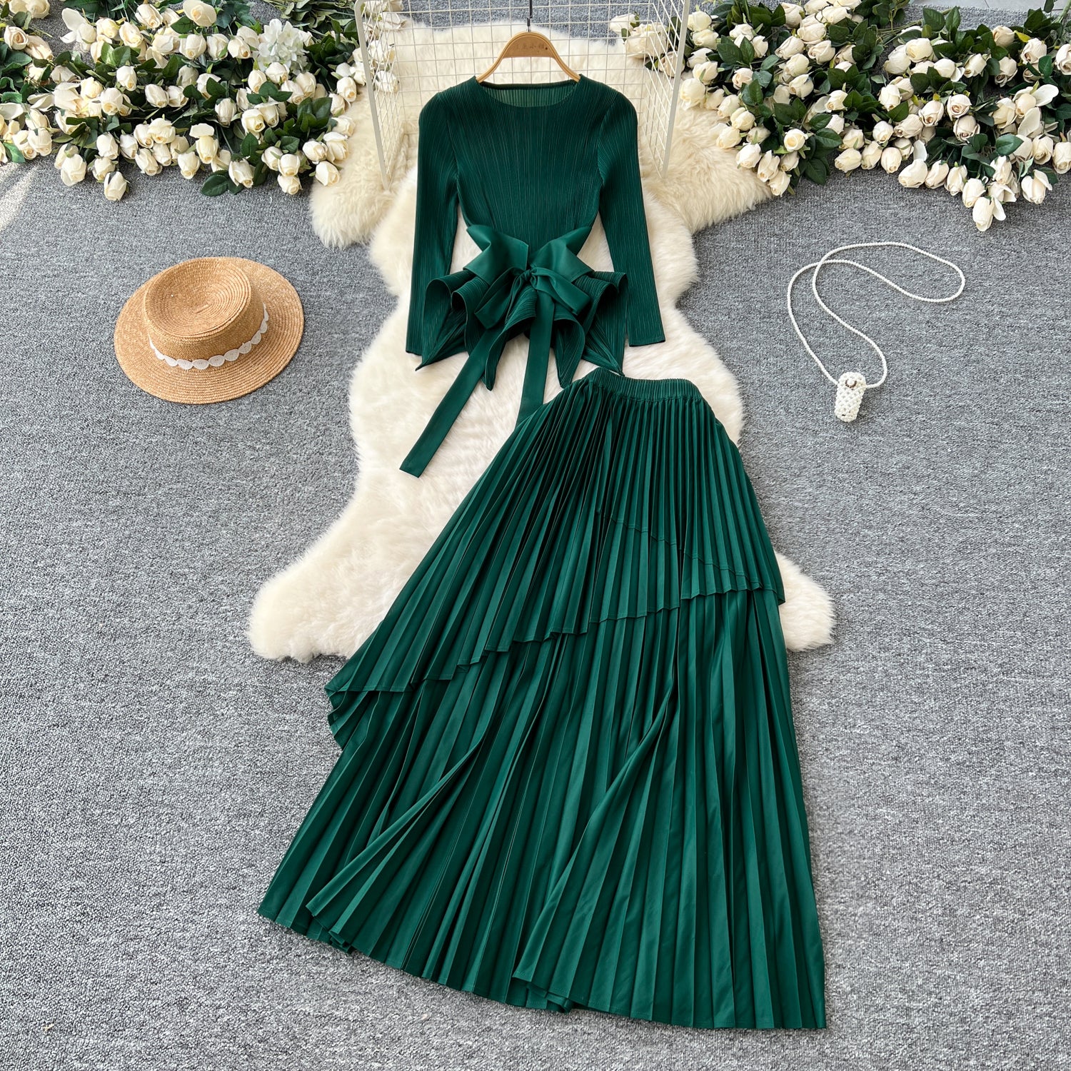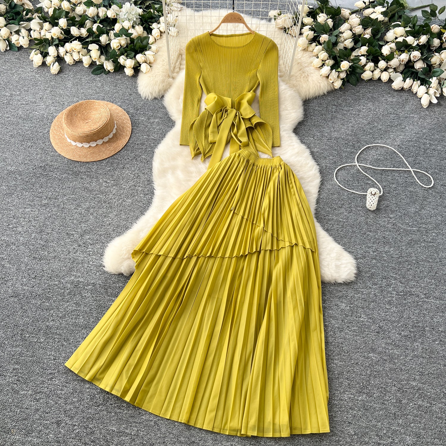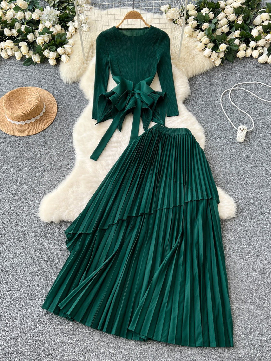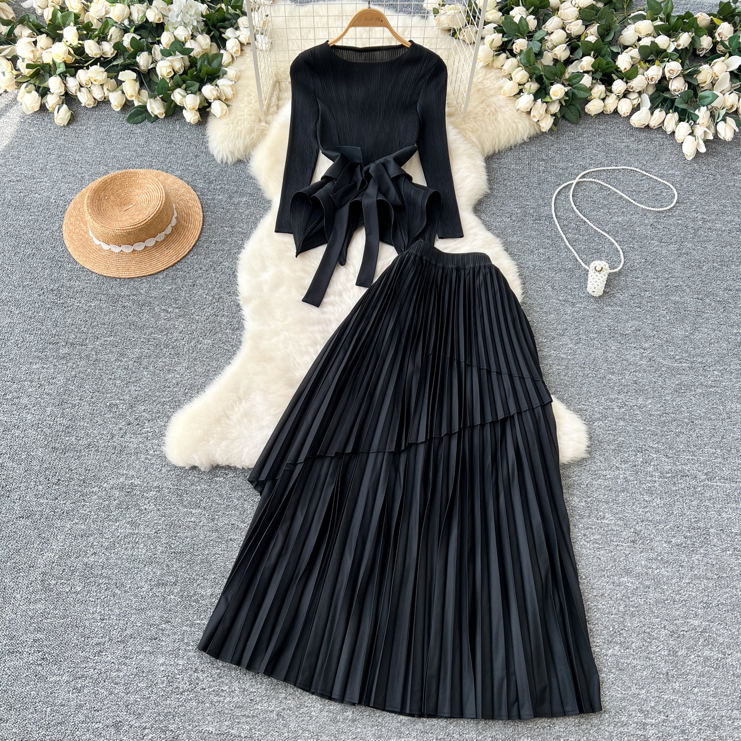 Small-Scale Vintage Hollow Crocheted Shoulder Sling Knitted Shirt Two Sets Of Women's Half-Dress