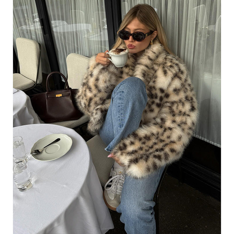 Exploding 2025 Autumn And Winter New Temperament Fashion Leopard-Print Collar Imitation Fur Coat
