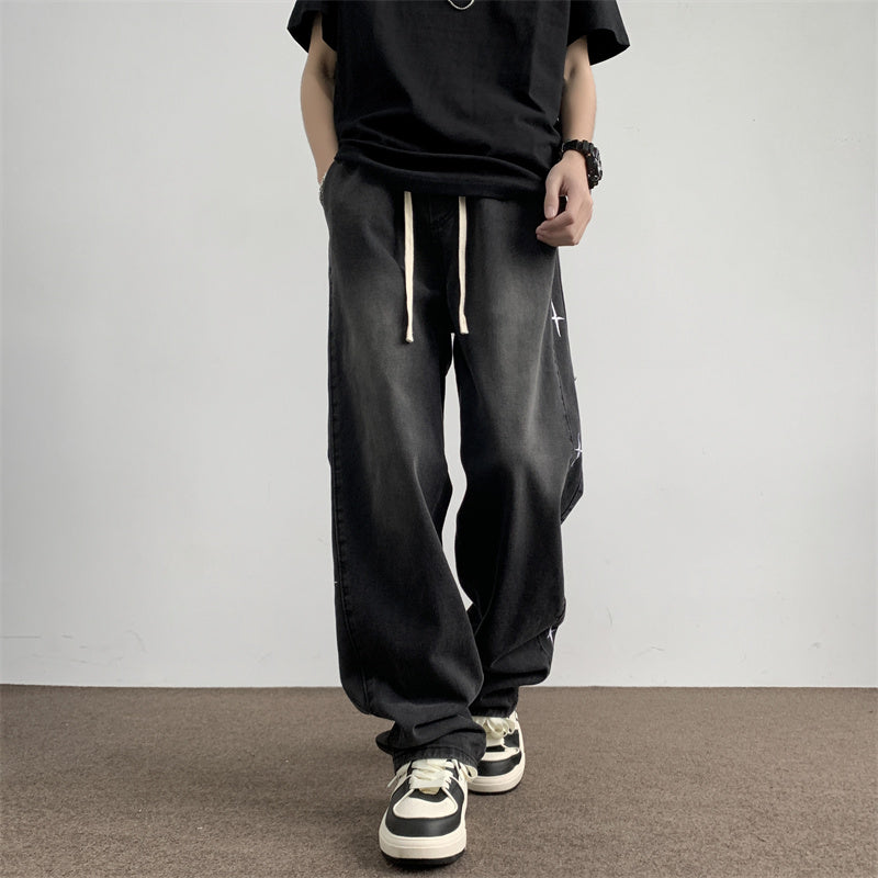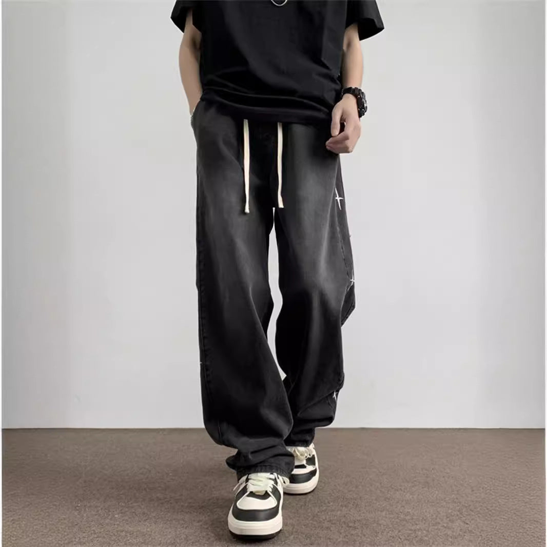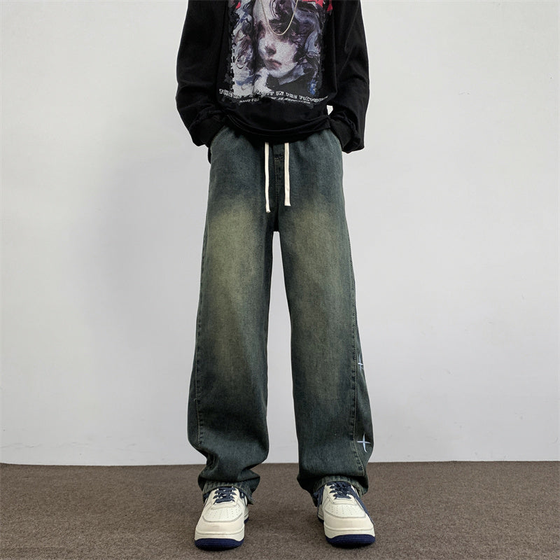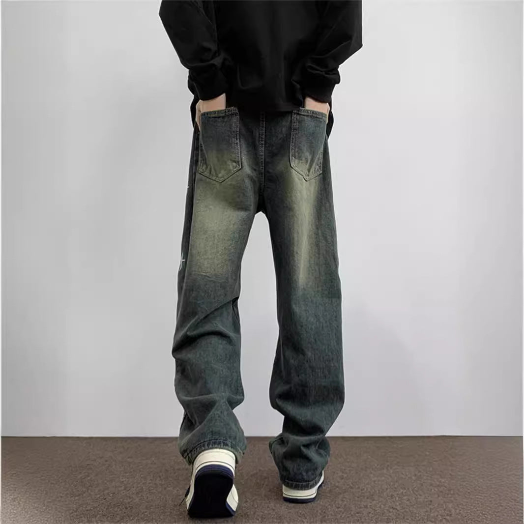 Fashion Niche Jeans Men 2025 New Spring And Autumn High Street Retro Old High Street Wide Legs Long Pants