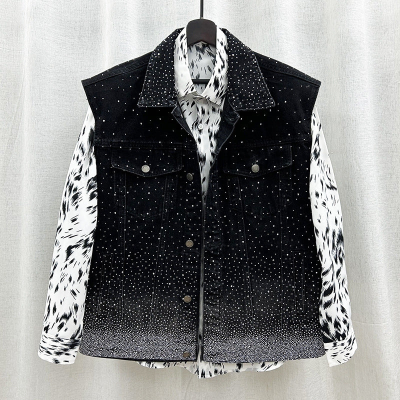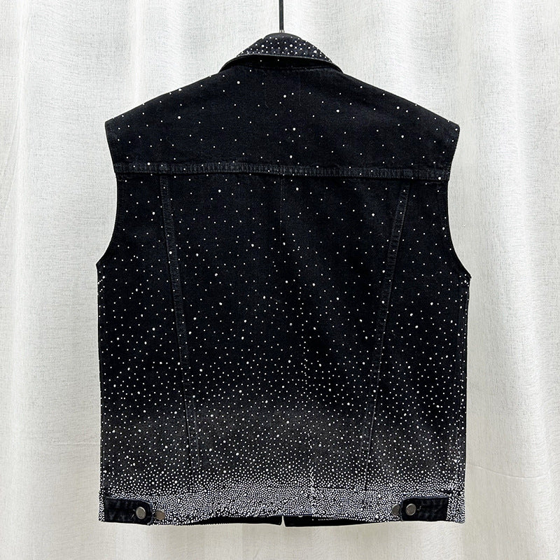 High-End Fashion Hot Full Of Star Denim Vest Coat Men's Fried Street Loose Sleeveless Vest Horse Clip Tide