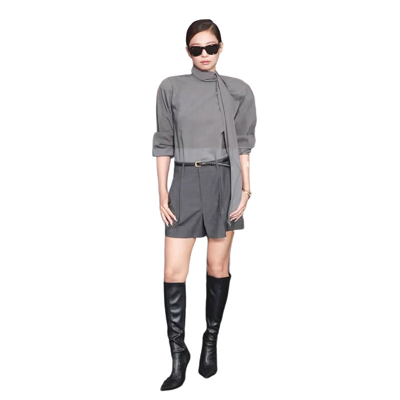 In The Autumn Of 2025, The New Women's Clothing Jennie Is The Same Casual Commuting Long-Sleeved Blouse High-Waisted Loose Shorts