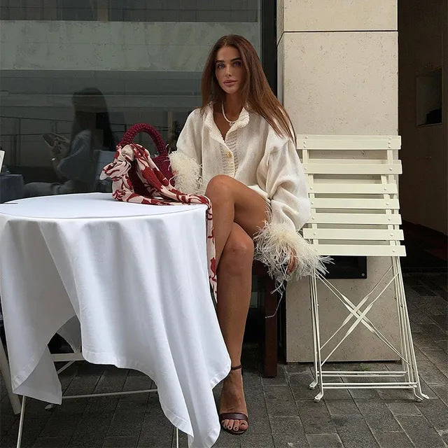 Ins Autumn And Winter New Women's Elegant Temperament Red Feather Design Knitted Cardigan Jacket
