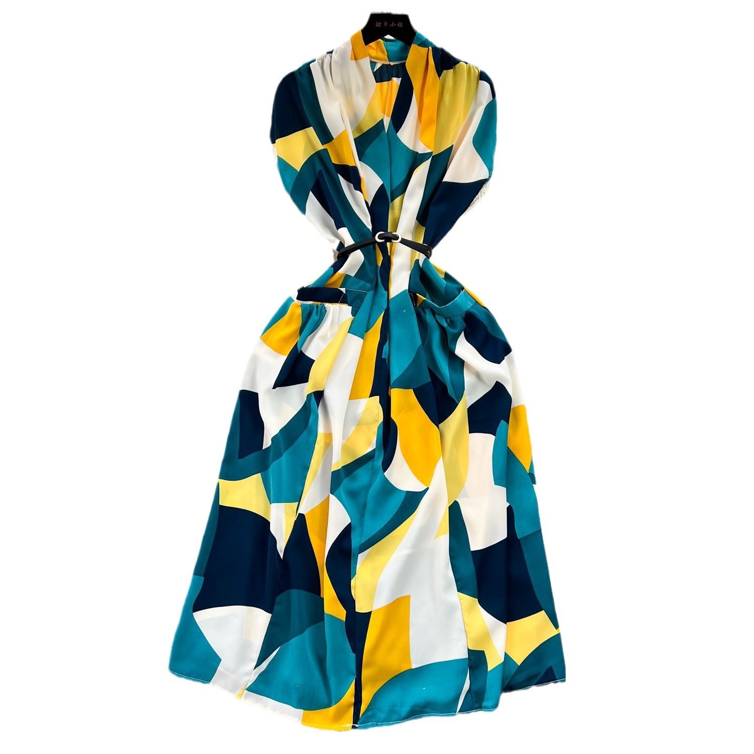 2025 Summer Dress New Niche Light Familiar Wind V To Receive Waist Thin Temperament French Pressure Folding Printing Chiffon Dress