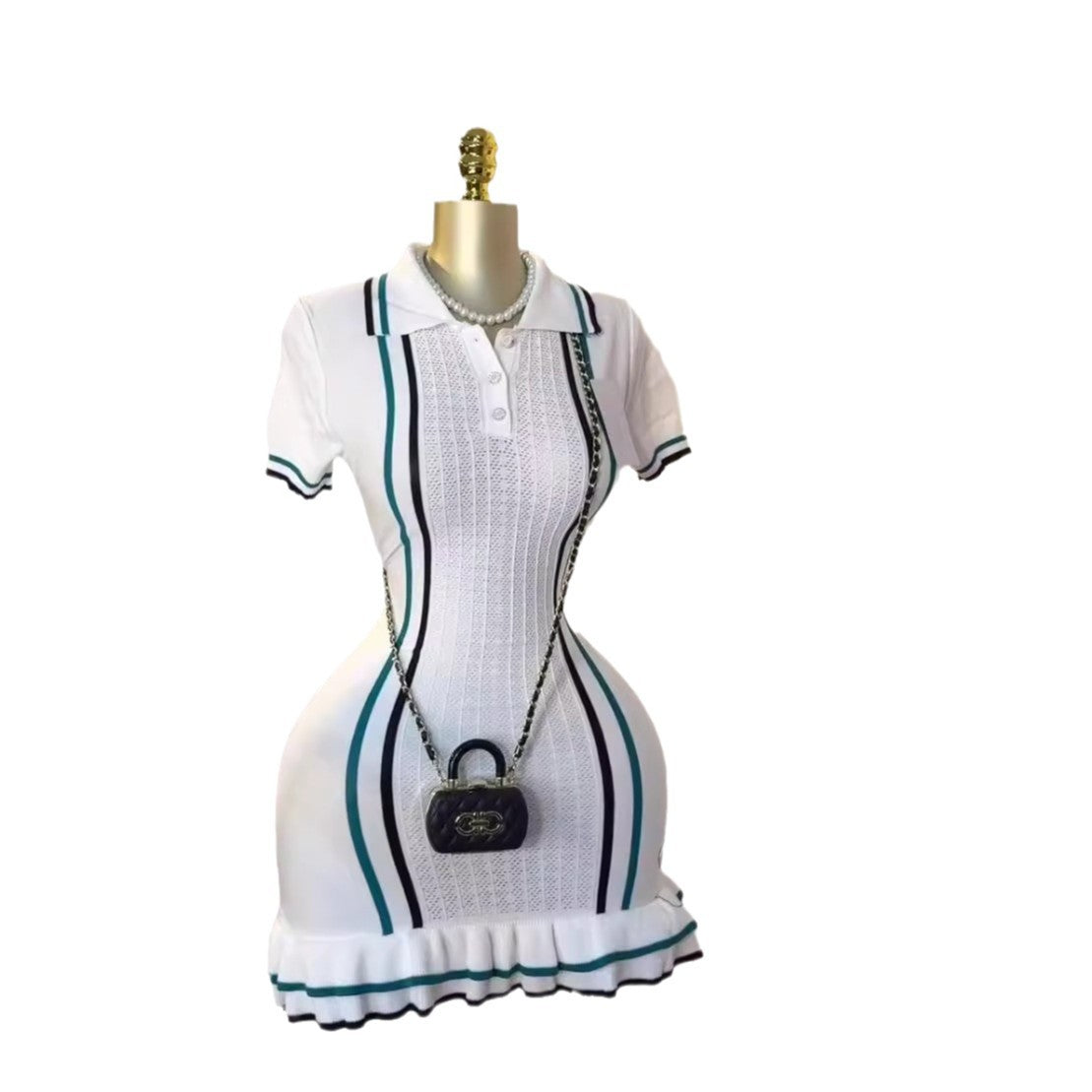 Little Scented Knitted Dress Woman's New French Retro Collar Bump Color Waist Thin Leaf Side Sweater Skirt