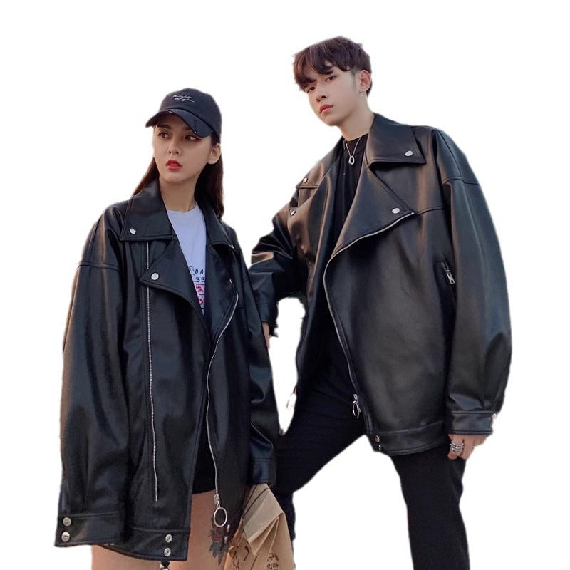 Men's Coat Leather Jacket Couple Dress Spring And Autumn Trend Handsome Loose Large-Size Locomotive Clothes Men And Women