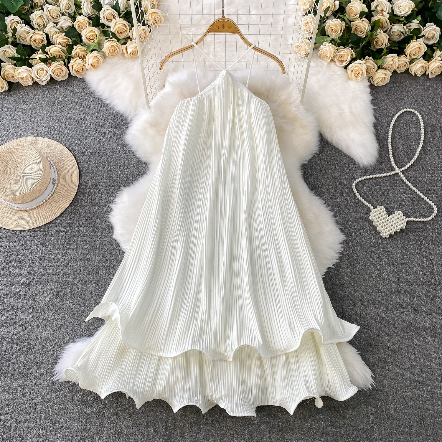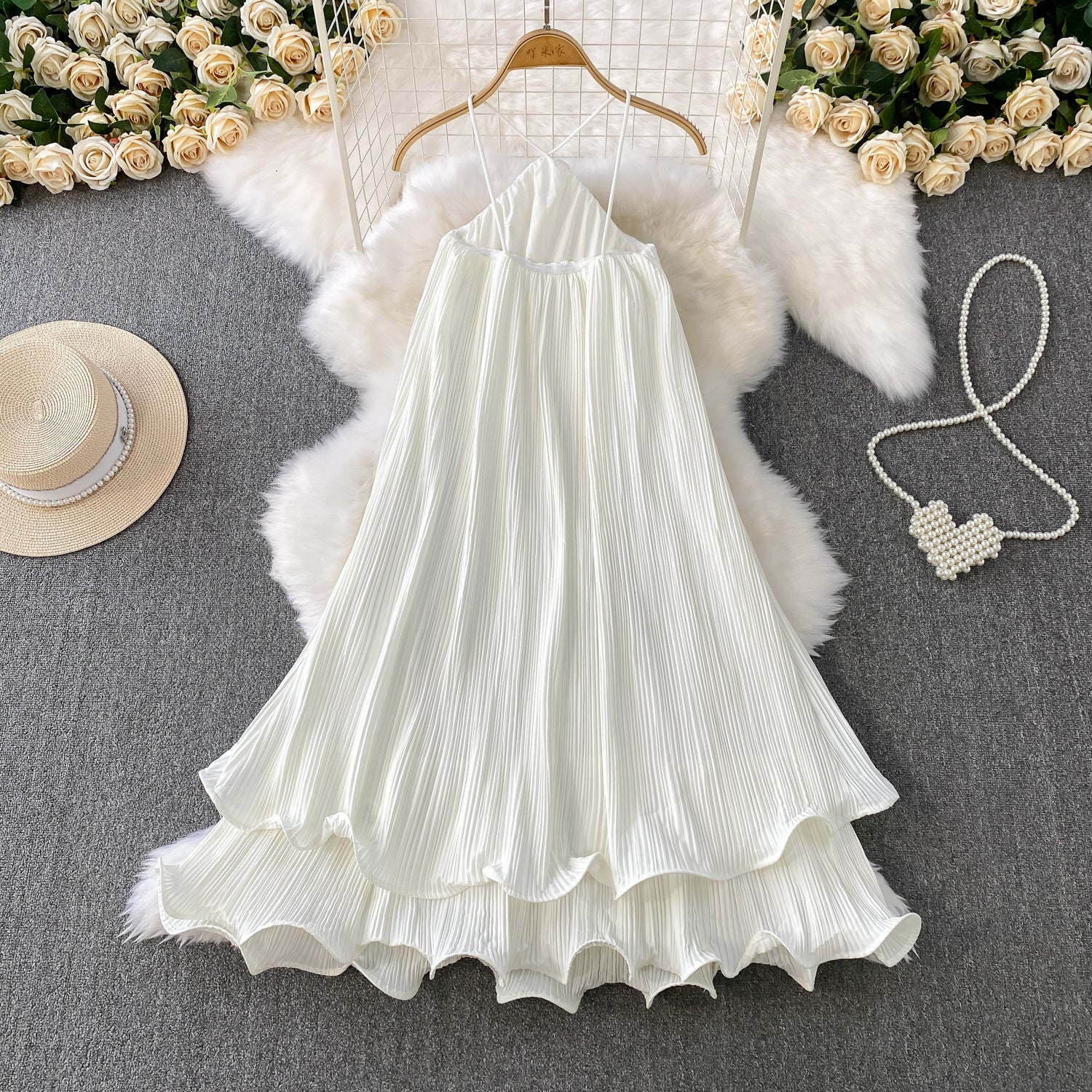 Seaside Holiday Wind Sexy Bare Back Hanging Neck Sling Dress Women's Summer Loose Thin Pony Cake Skirt