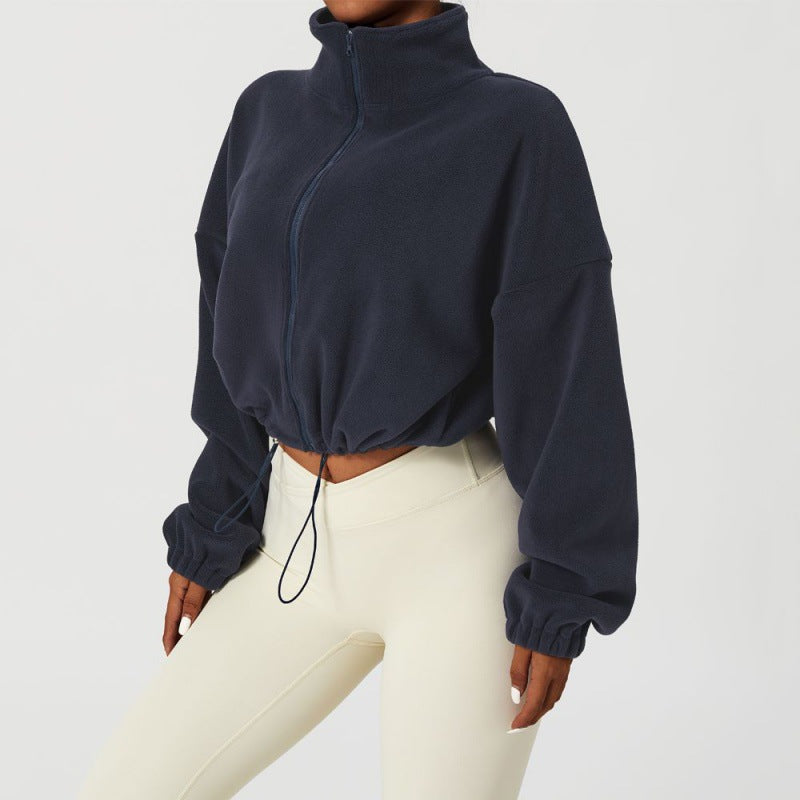 Sports Coat Olympic Grain Velvet Autumn And Winter Collar Loose Pumping Rope Zipper Sweater Fashion Hot Girl Dress Thicken