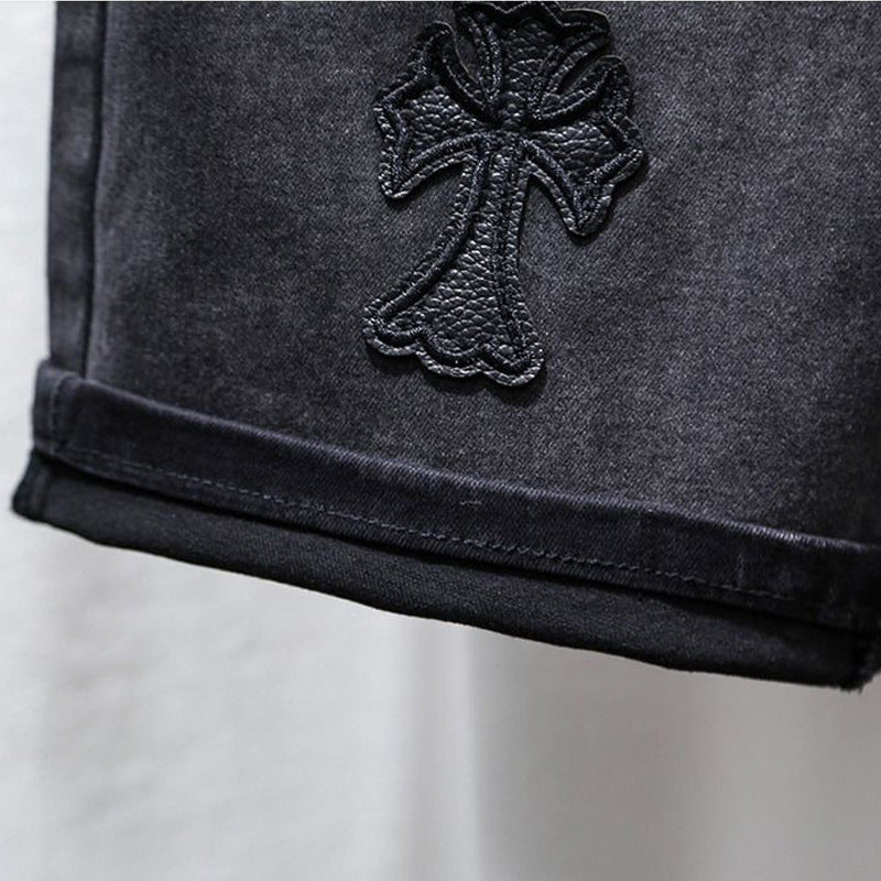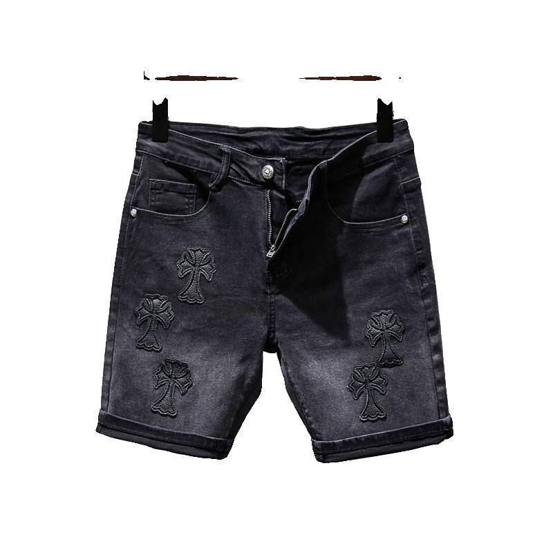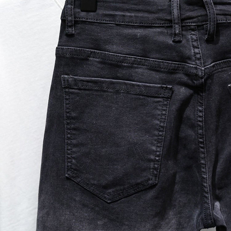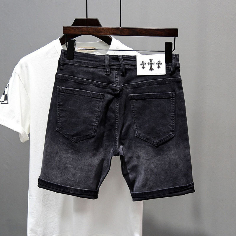 Stylish Black Denim Shorts Men's Summer Slim Retro Mids Pants Gradient Elastic Five-Point Trousers