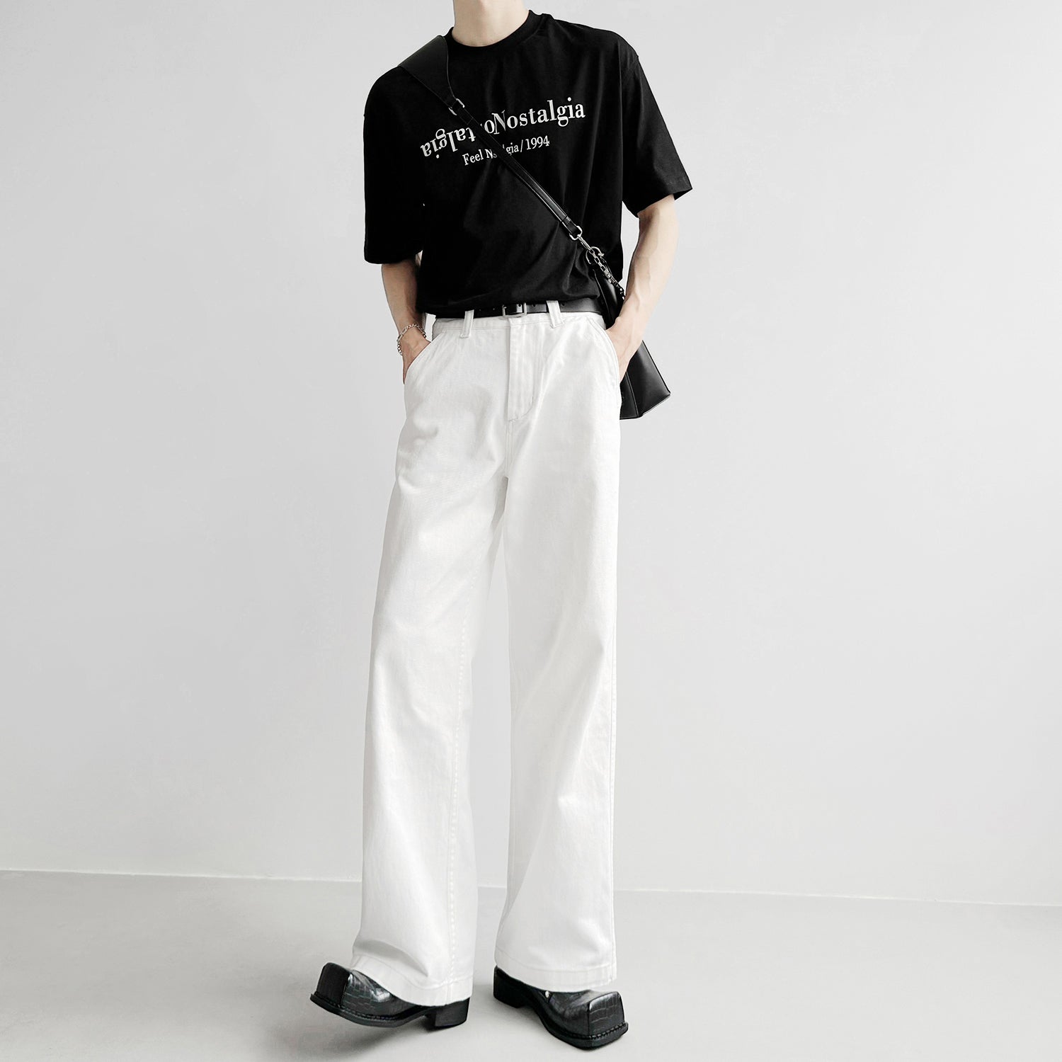 Superior Sensing White Jeans Men's And Women's Loose Straight Drags Broad Legged Couple Casual Cleanfit Pants