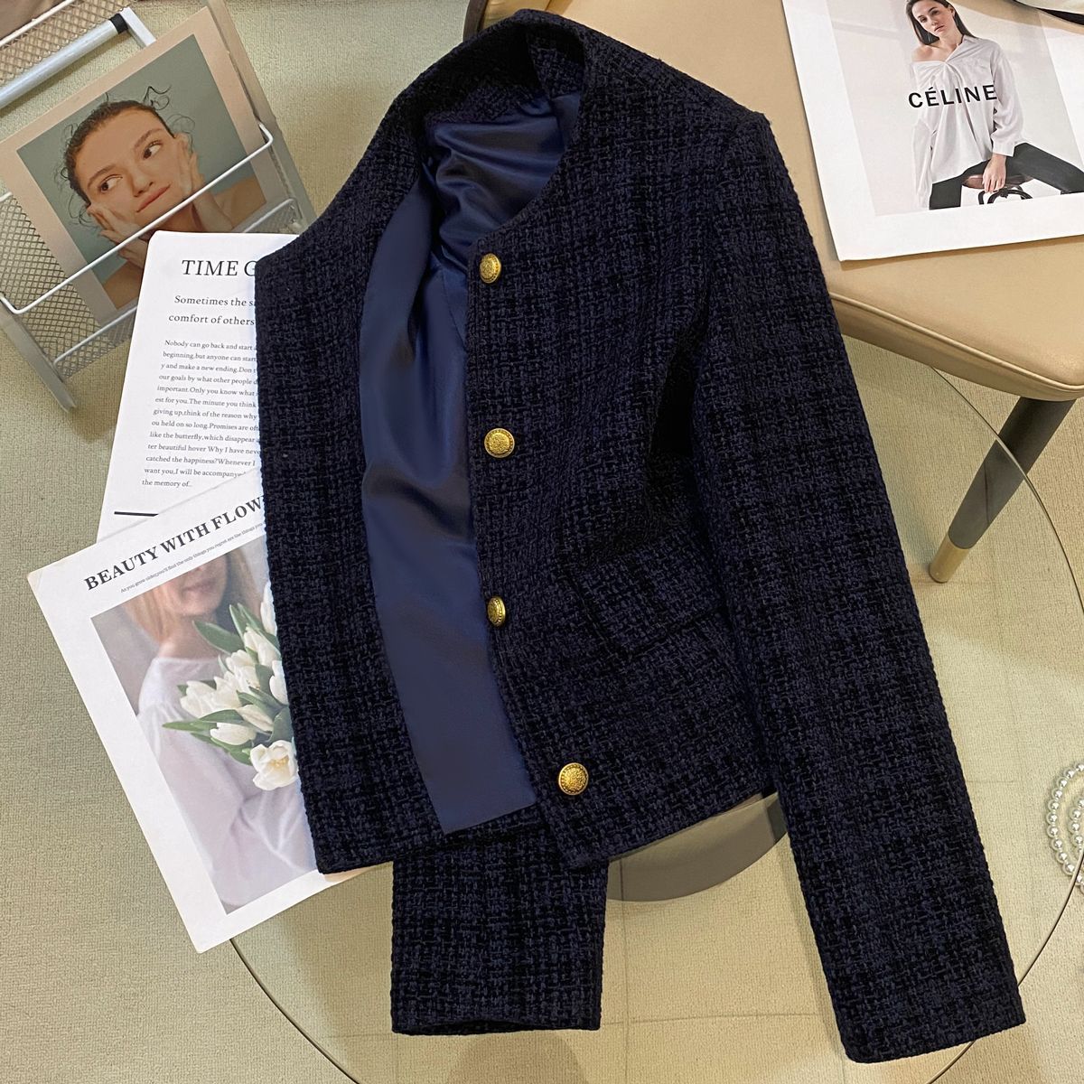 Tibetan Blue Small Scented Coat Autumn 2025 New French Style Temperament Design Sense Retro Short Top