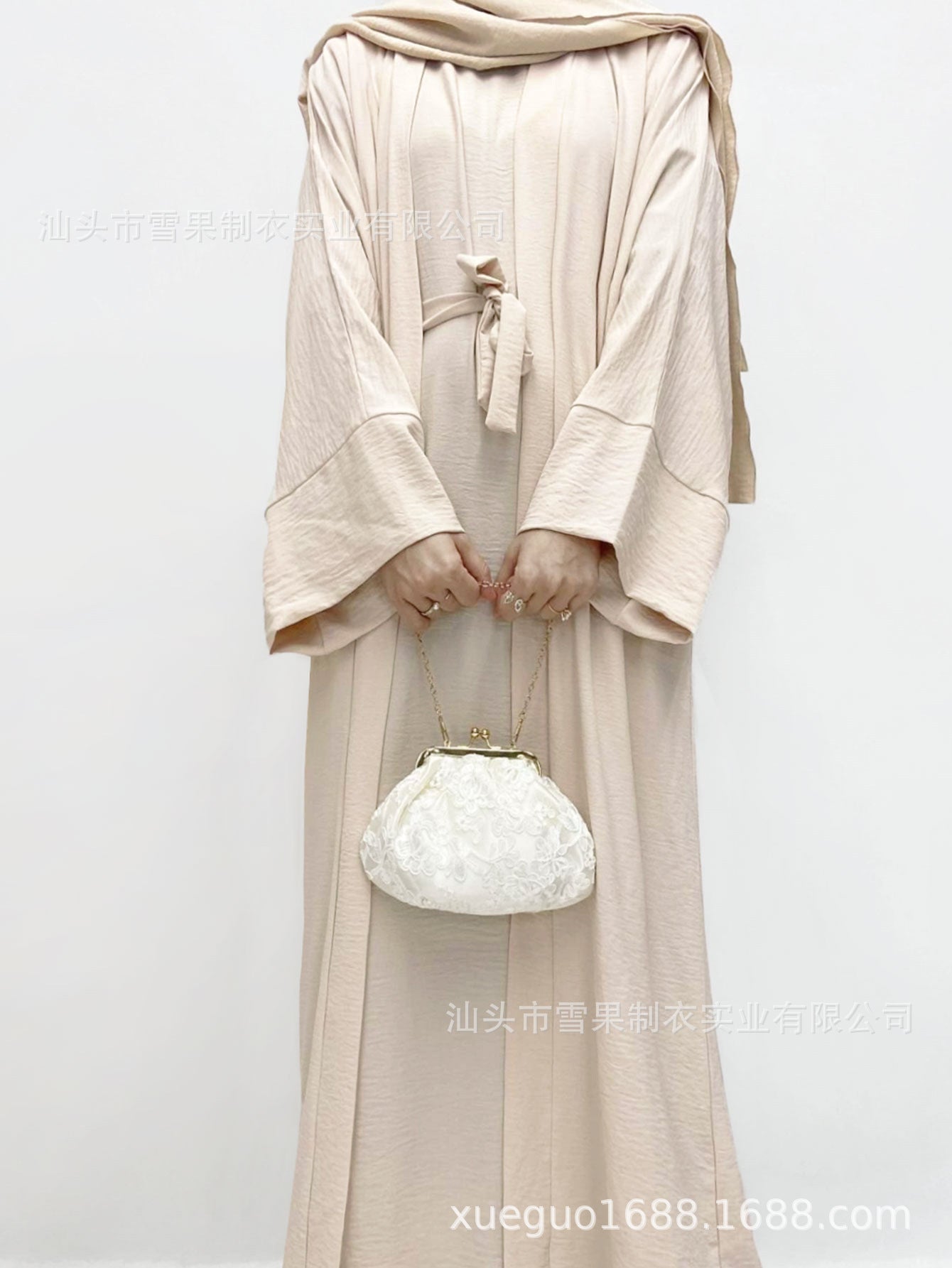 Tiktok Robe Skirt Coat Women's Explosive Middle East Turkey Solid Color Big-Size Cardigan 2 Sets