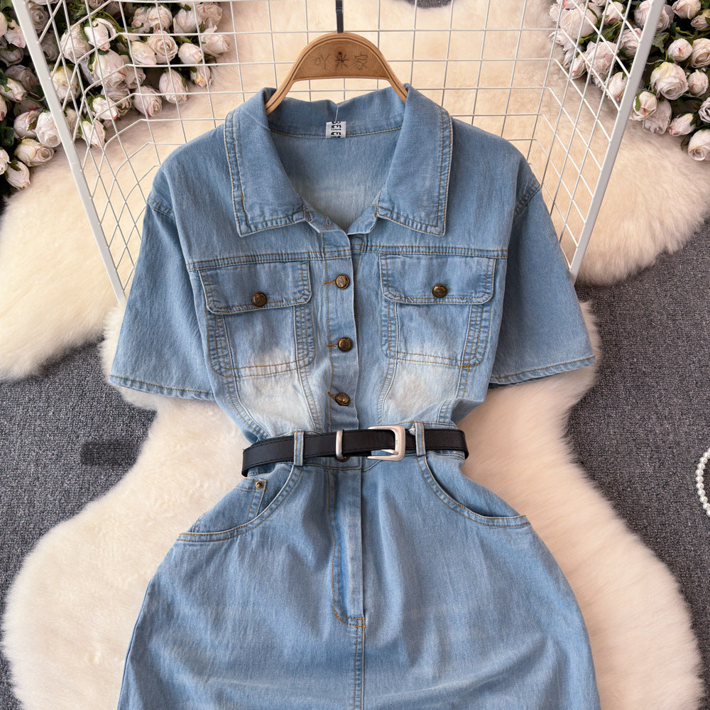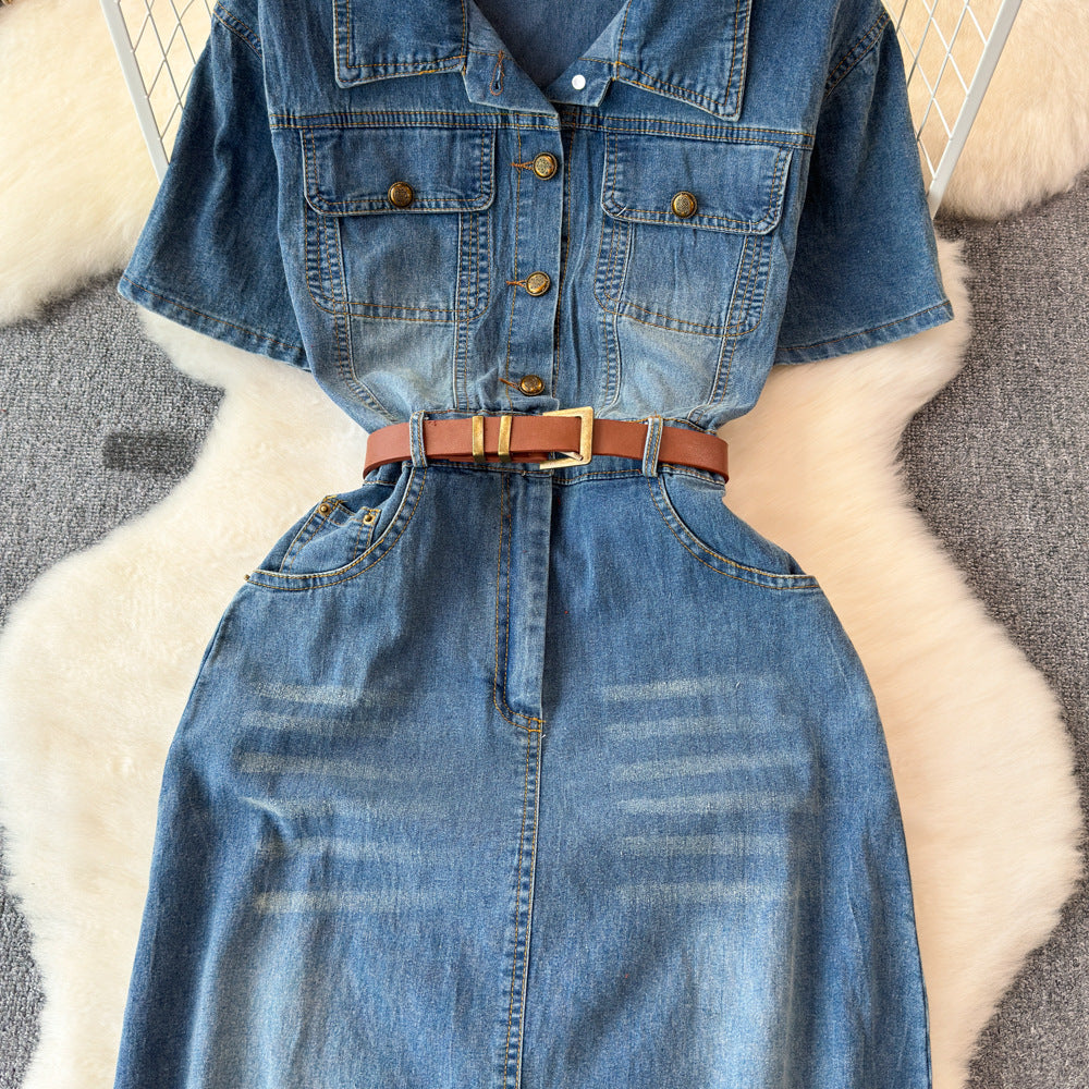 Vintage Hong Kong Style Denim Dress Woman 2025 Summer New High-End Temperament To Show Thin Long Dress