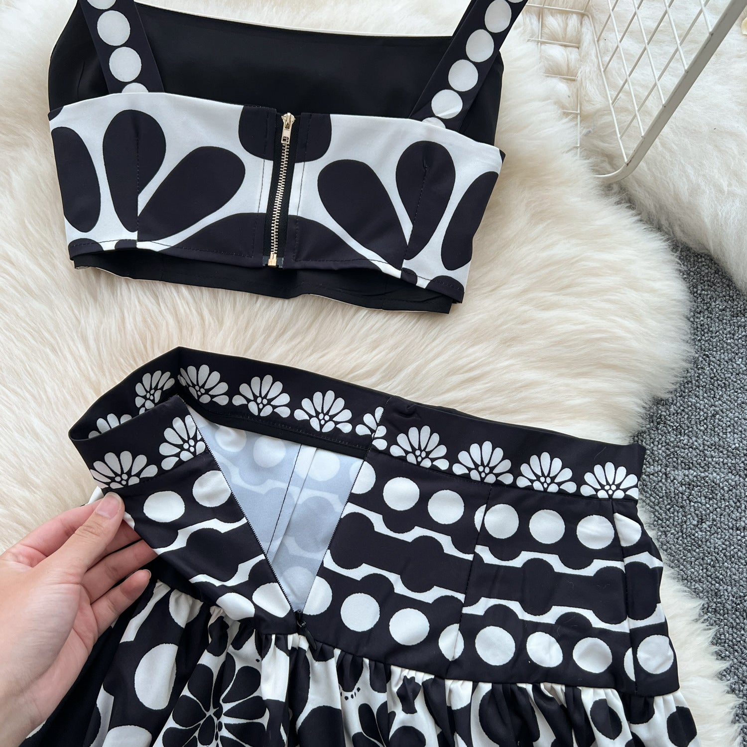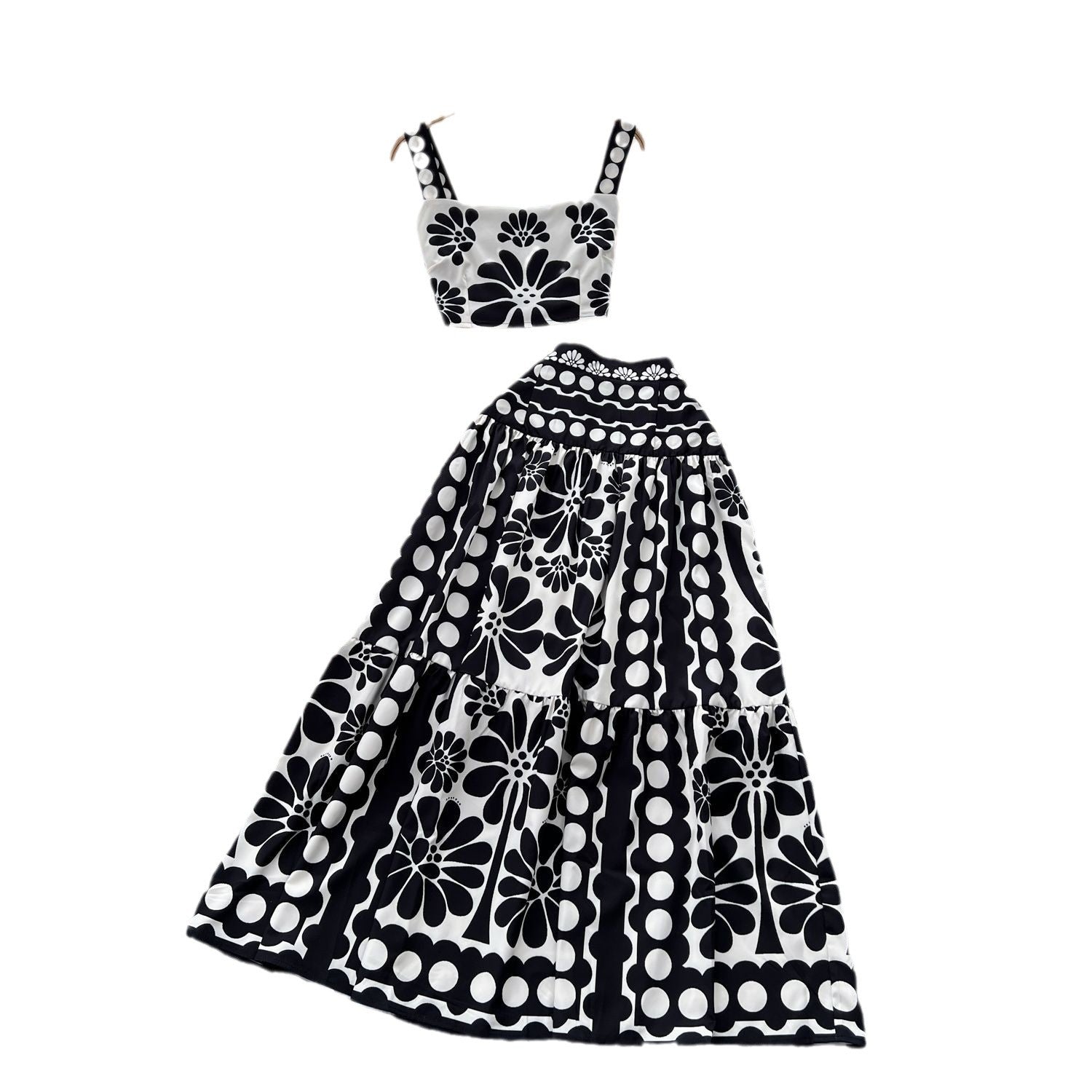 Small-Scale Vintage Hollow Crocheted Shoulder Sling Knitted Shirt Two Sets Of Women's Half-Dress