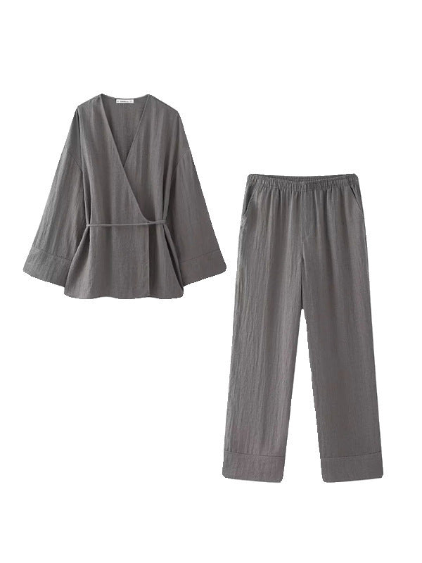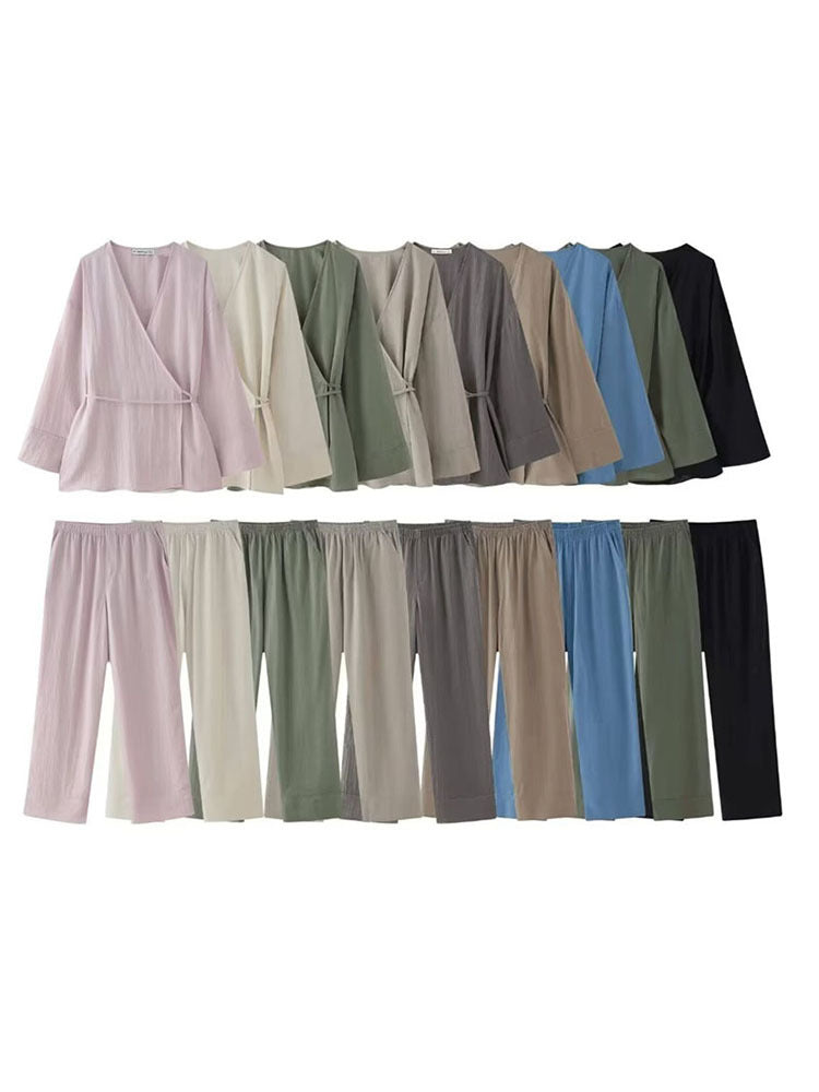 Women's 2025 New Double Flamingo Comfortable Linen And Suit Dress + Pants Set Women