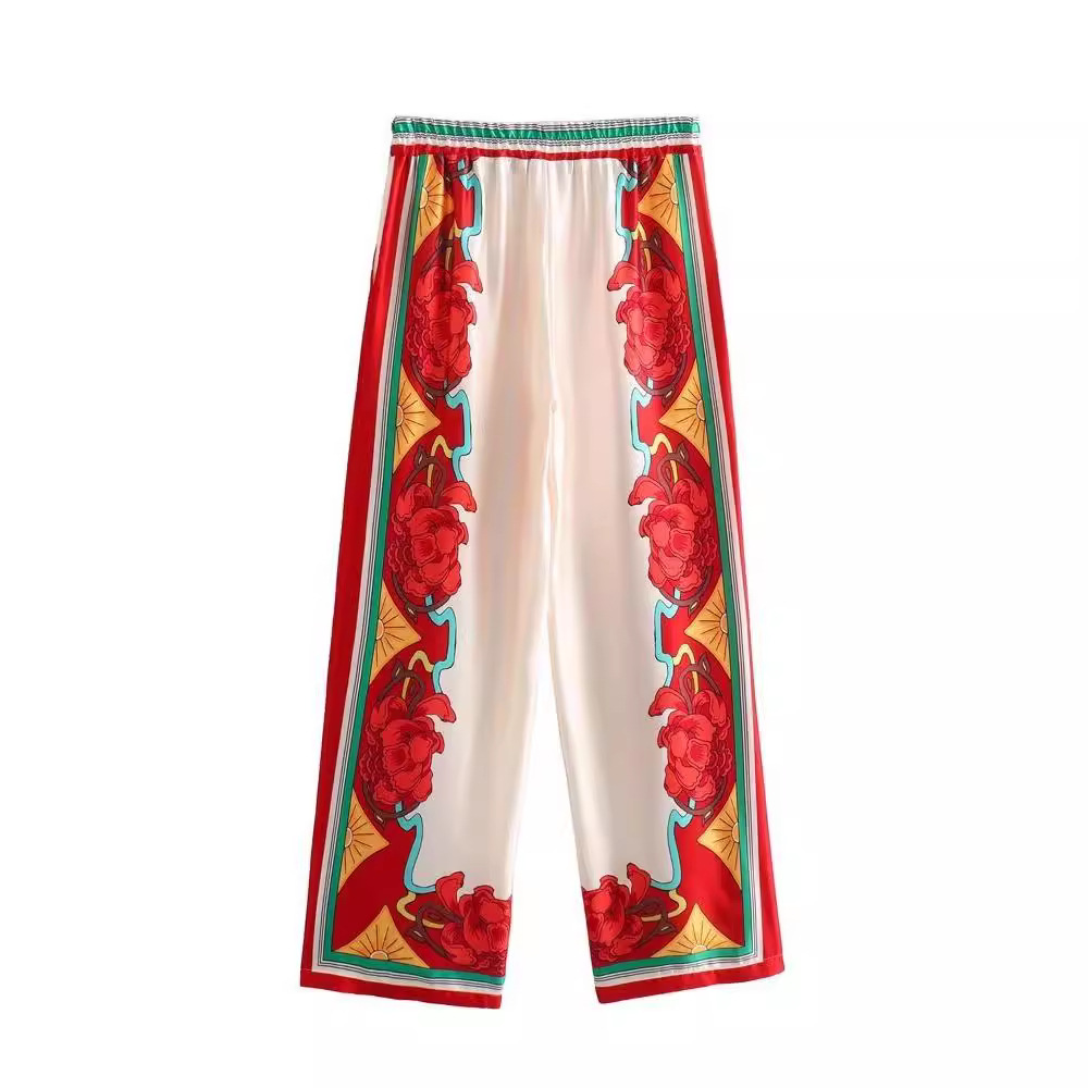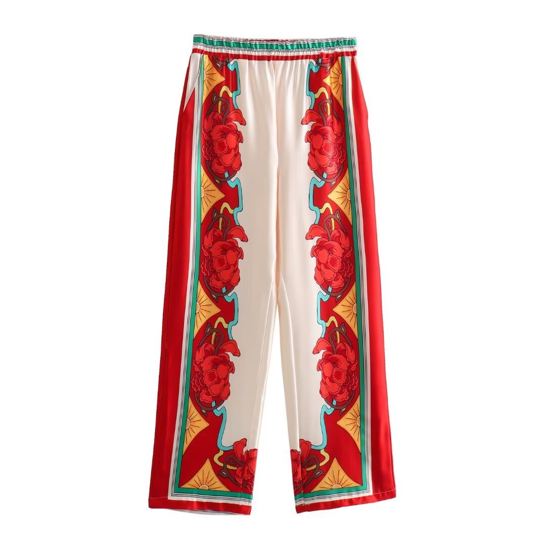 Women's Clothing Positioning Printed Bat Sleeve Loose Shirt + High Waist Loose Straight Through The Casual Pants Women's Suit